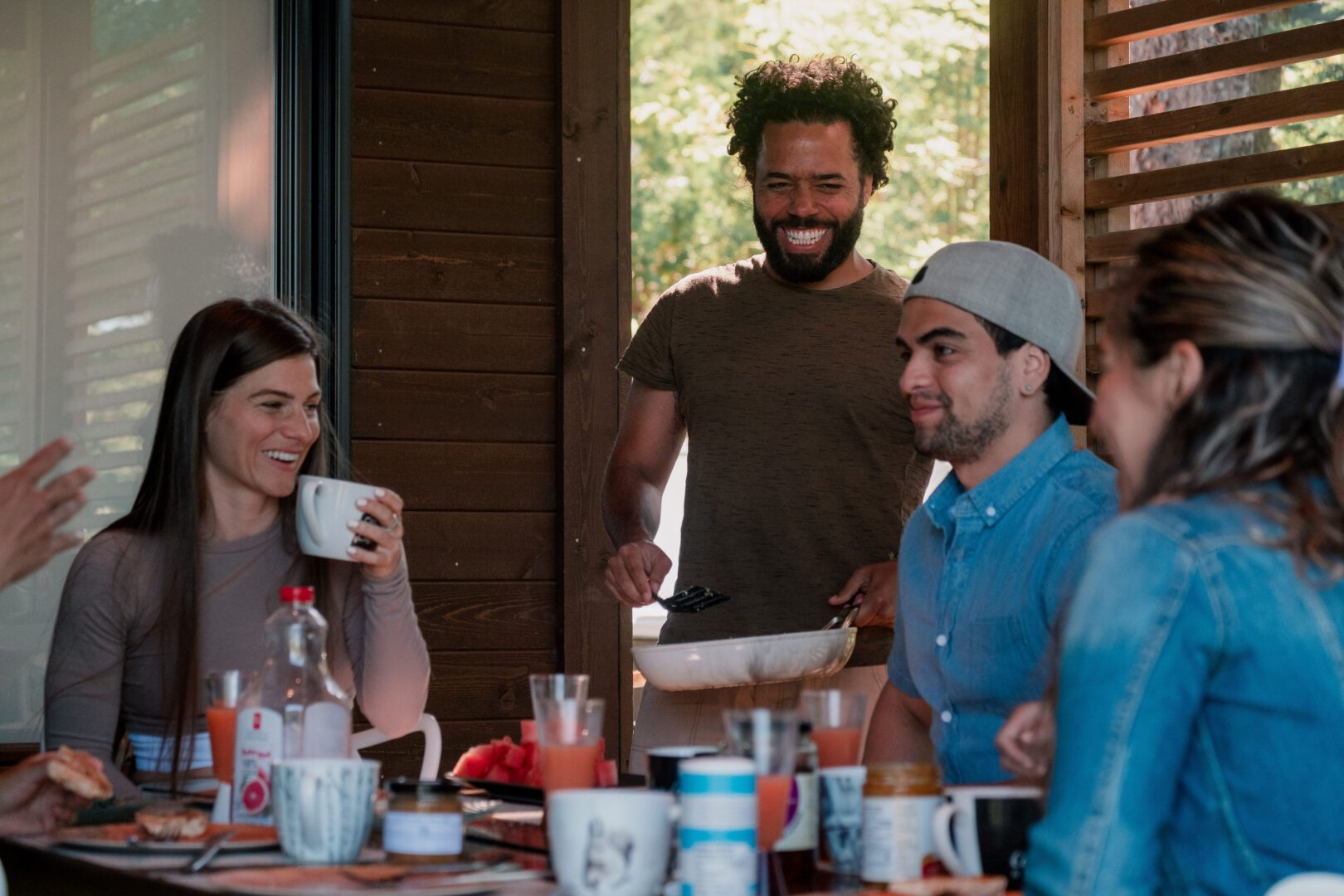Un coin salon avec foyer au gaz (disponible de novembre à avril), équipé d’une télévision HD avec lecteur Blu-Ray et système de son FM avec connexion Bluetooth pour y écouter votre musique préférée.