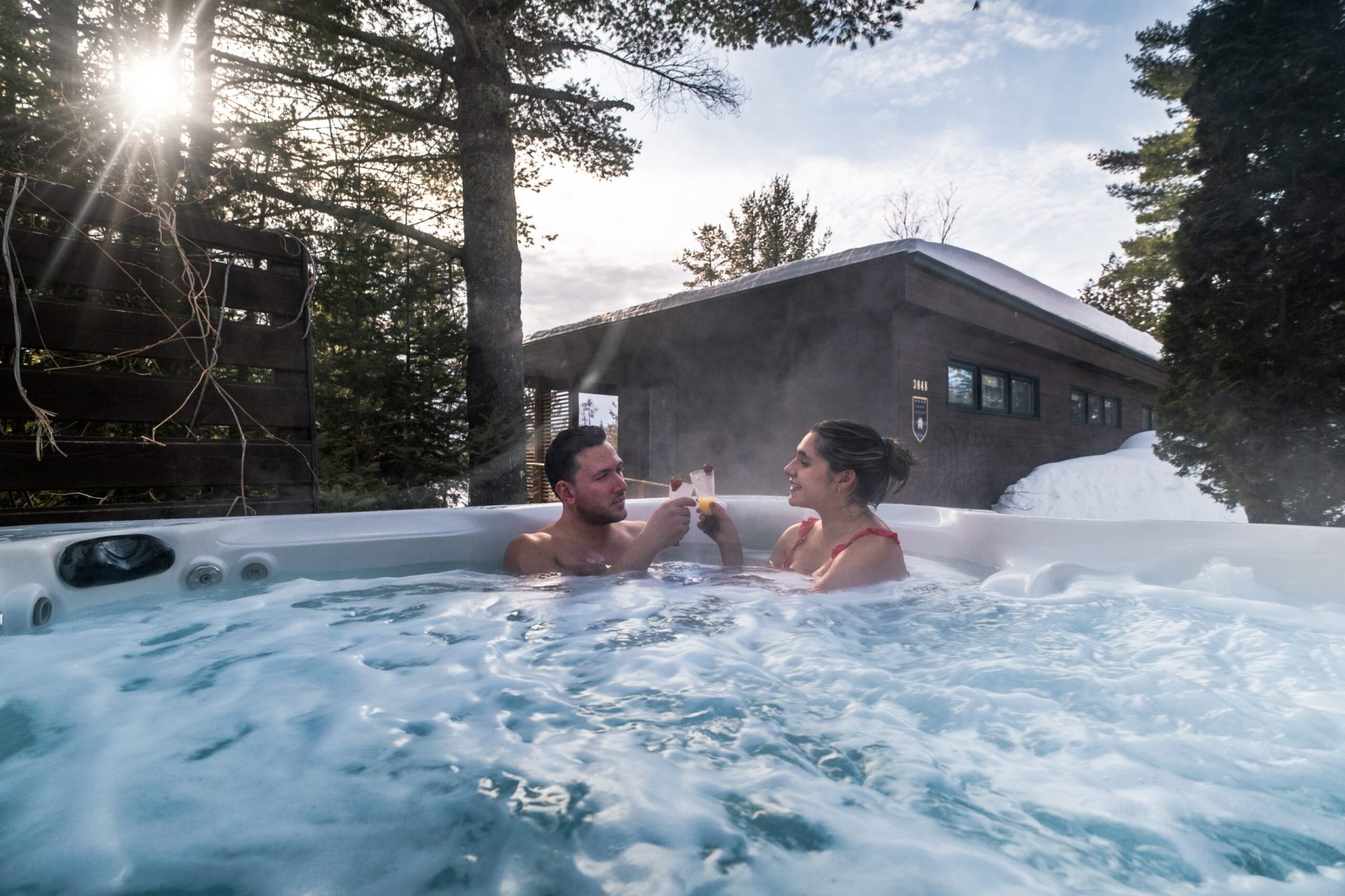 Le chalet est équipé d’un grand spa 6 places disponible toute l’année et d’une terrasse extérieure avec coin foyer (bois fourni). Un barbecue au propane fonctionnel et accessible toute l’année ravira les amateurs de grillades en toutes saisons. Le stationnement du chalet peut facilement accueillir 5 voitures… mais en hiver, il est préférable d’accéder au chalet avec un véhicule 4 roues motrices car l’entrée du driveway est en pente.