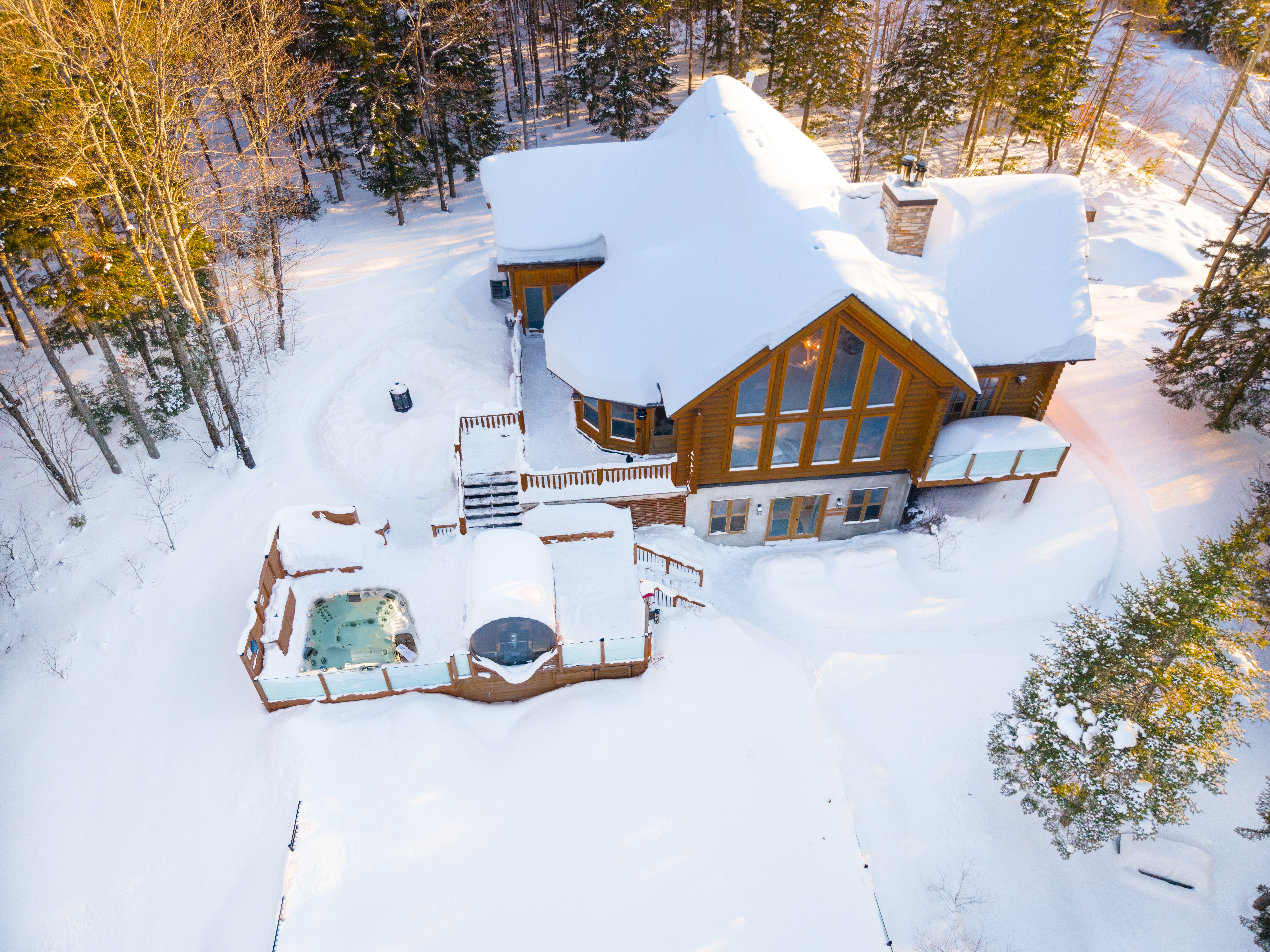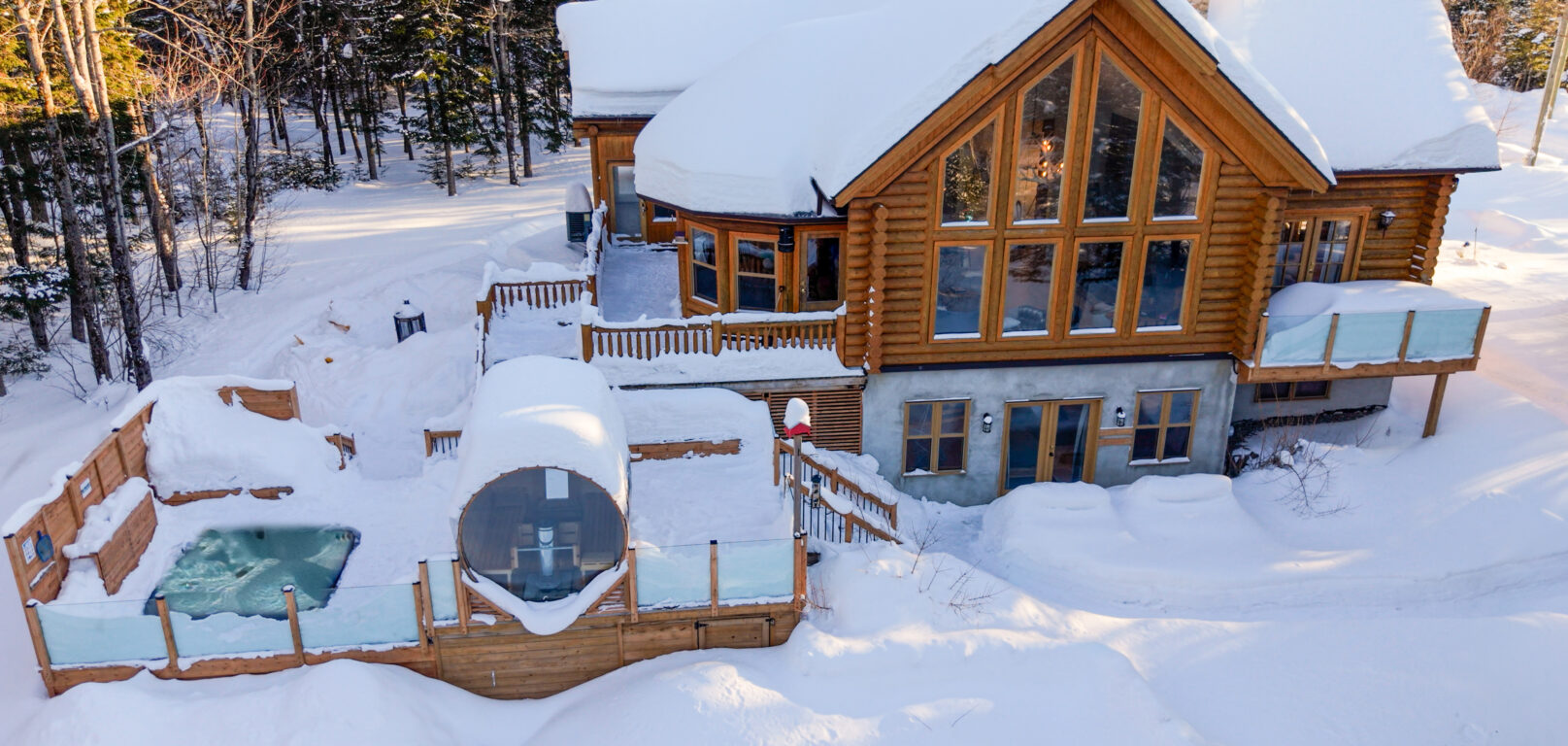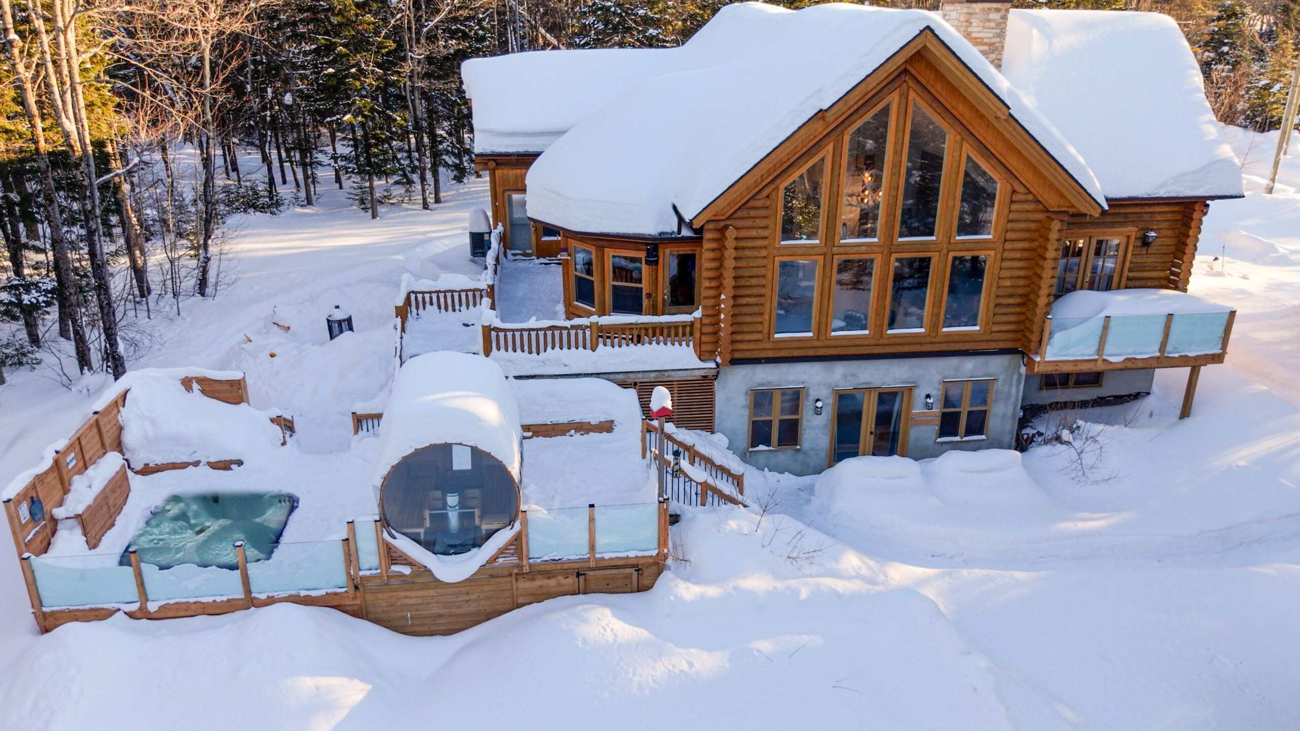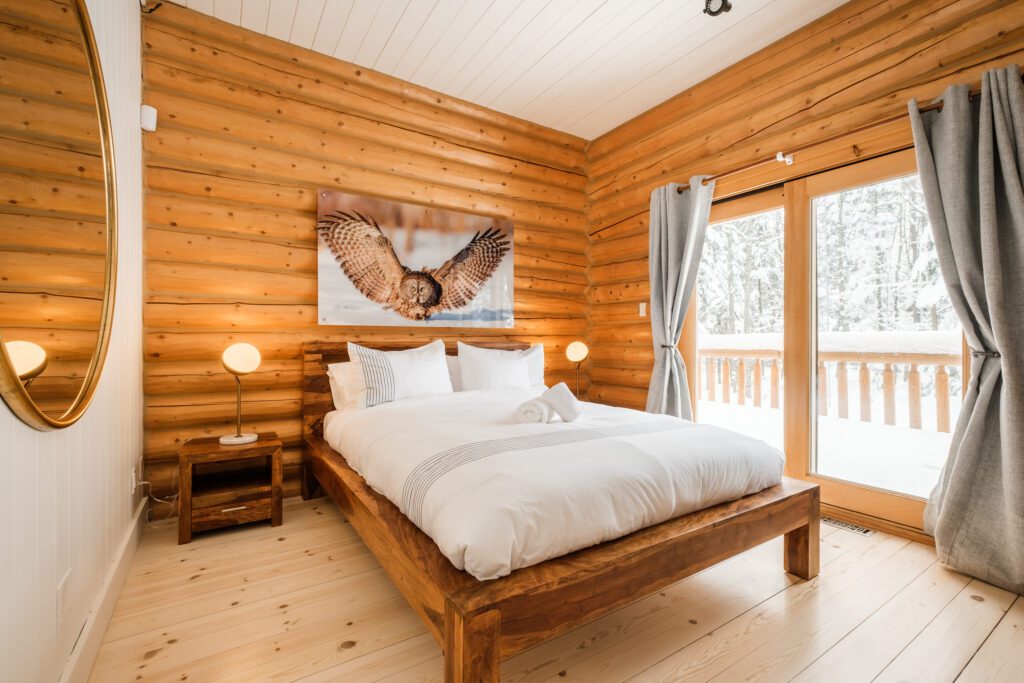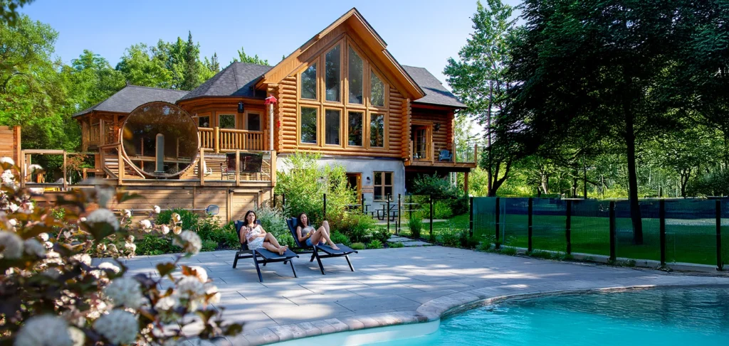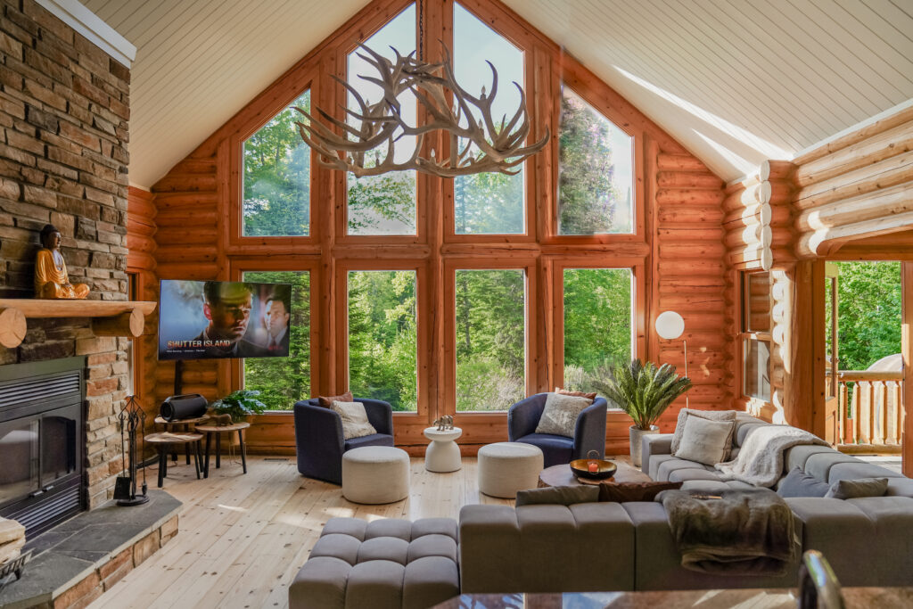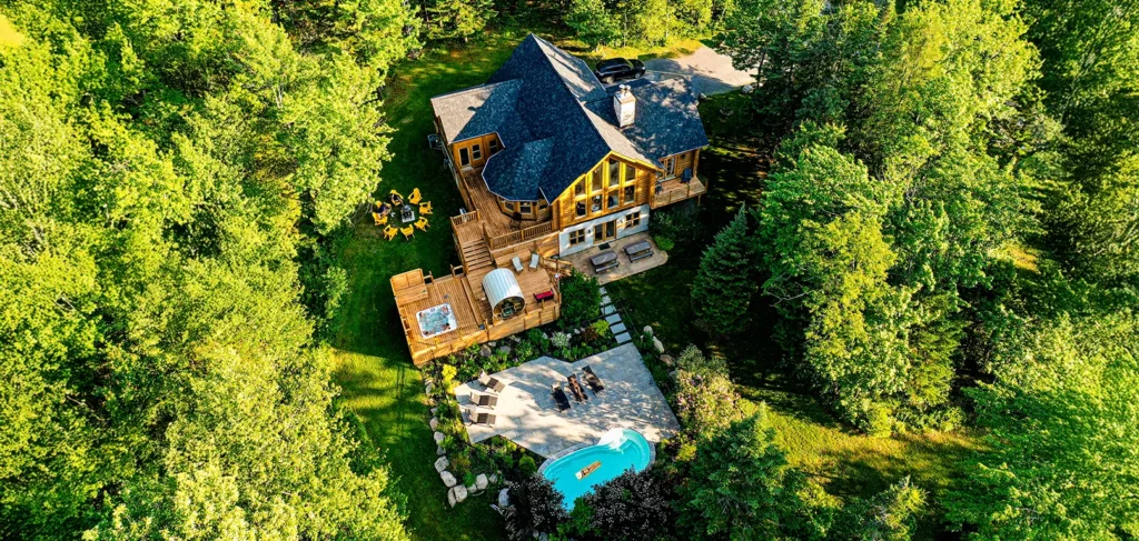 Le plus spacieux des Chalets Zenya, le Chalet Golden Bear est un chalet majestueux en bois rond situé au sein du prestigieux Domaine du Lac Fiddler, à la sortie de Morin Heights, dans la Vallée de Saint-Sauveur. Le chalet est situé sur un grand terrain boisé privé, d’une superficie de plus de 70,000 pieds carrés. À l’abri des voisins et des regards indiscrets, vous serez assurés d’y trouver tranquillité et intimité et de profiter pleinement de vos vacances! Relaxez en toute sérénité en profitant de notre spa et de notre sauna sec extérieur (disponibles à l’année longue) et de nombreuses activités à proximité. Notez que la piscine creusée extérieure chauffée est ouverte du 1er juin à fin septembre.