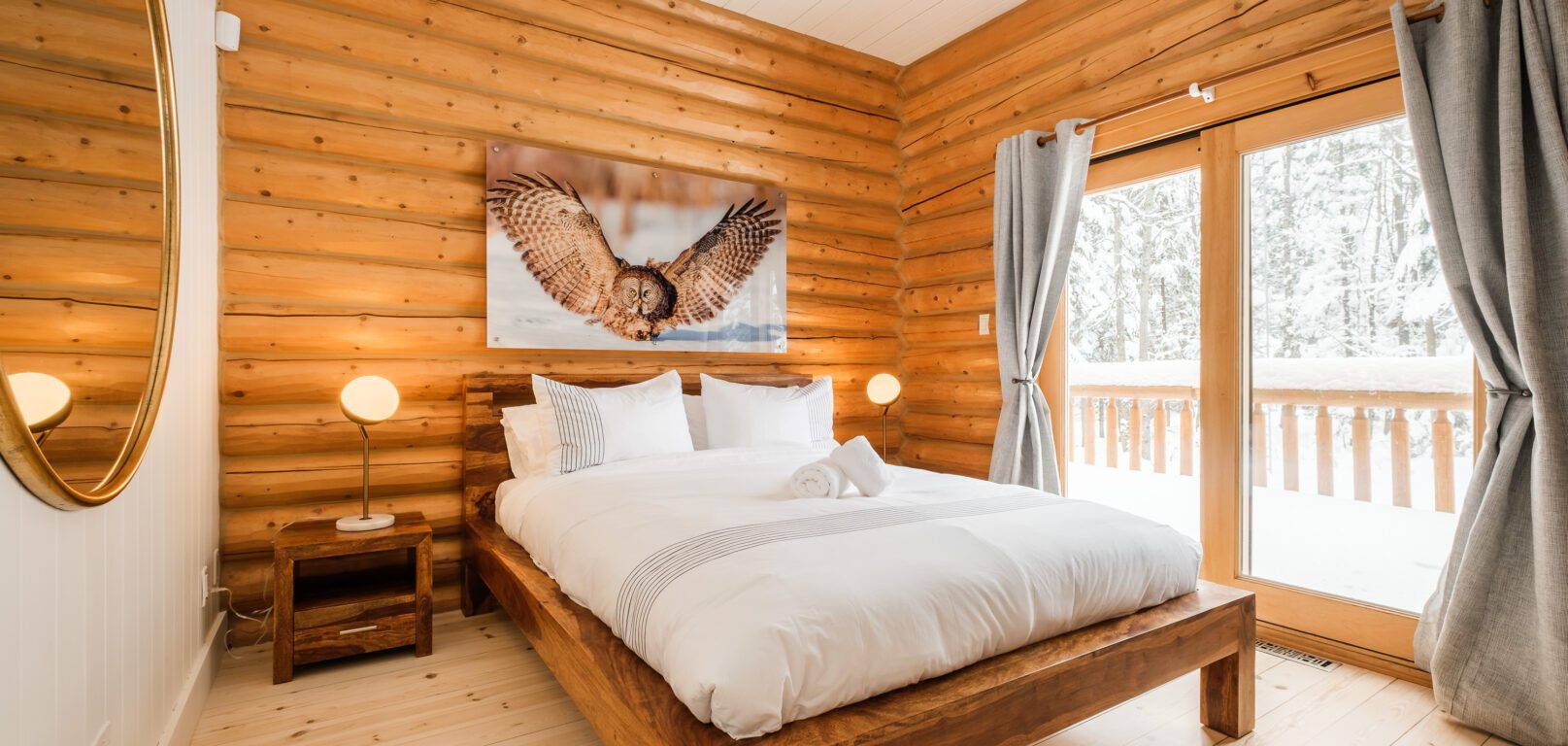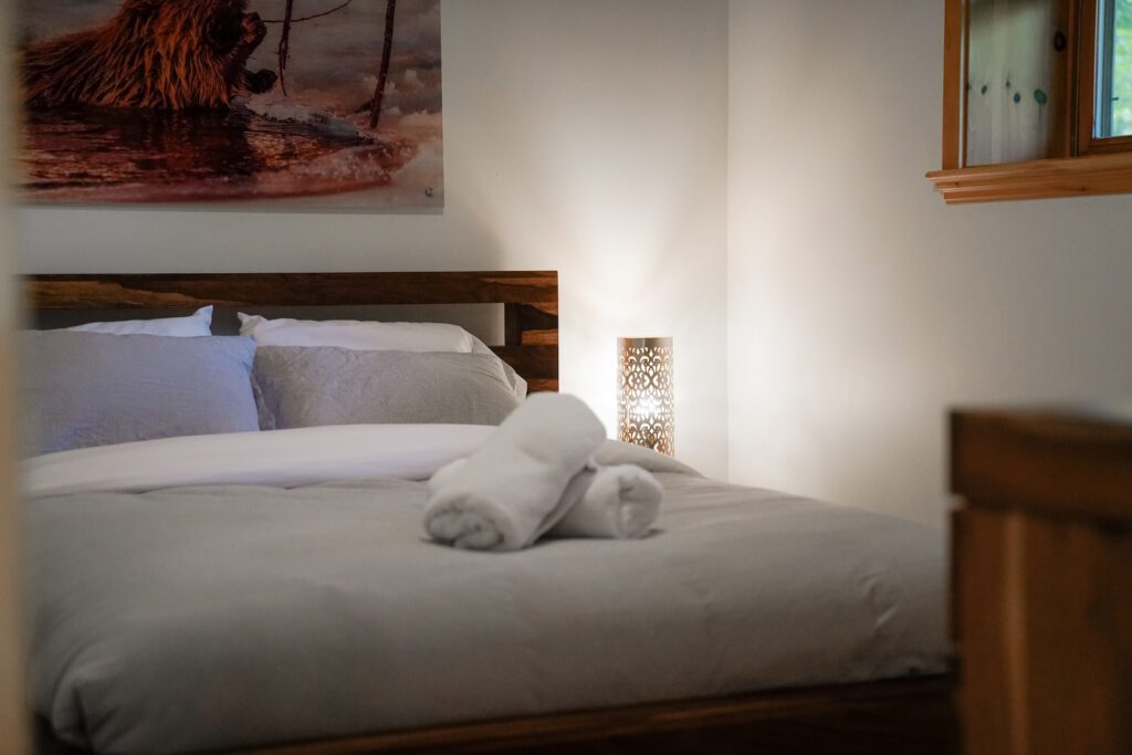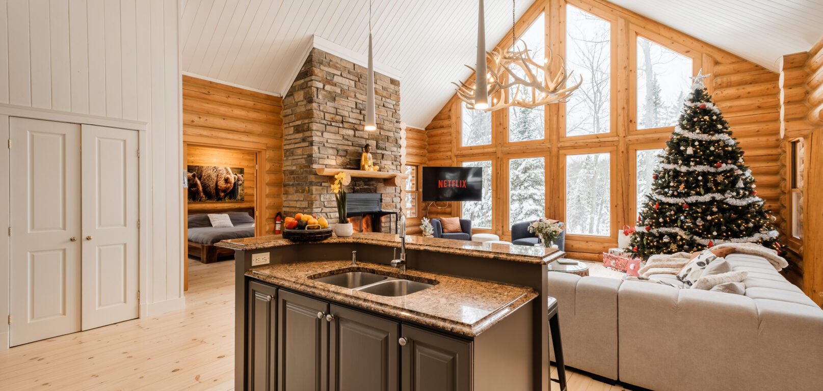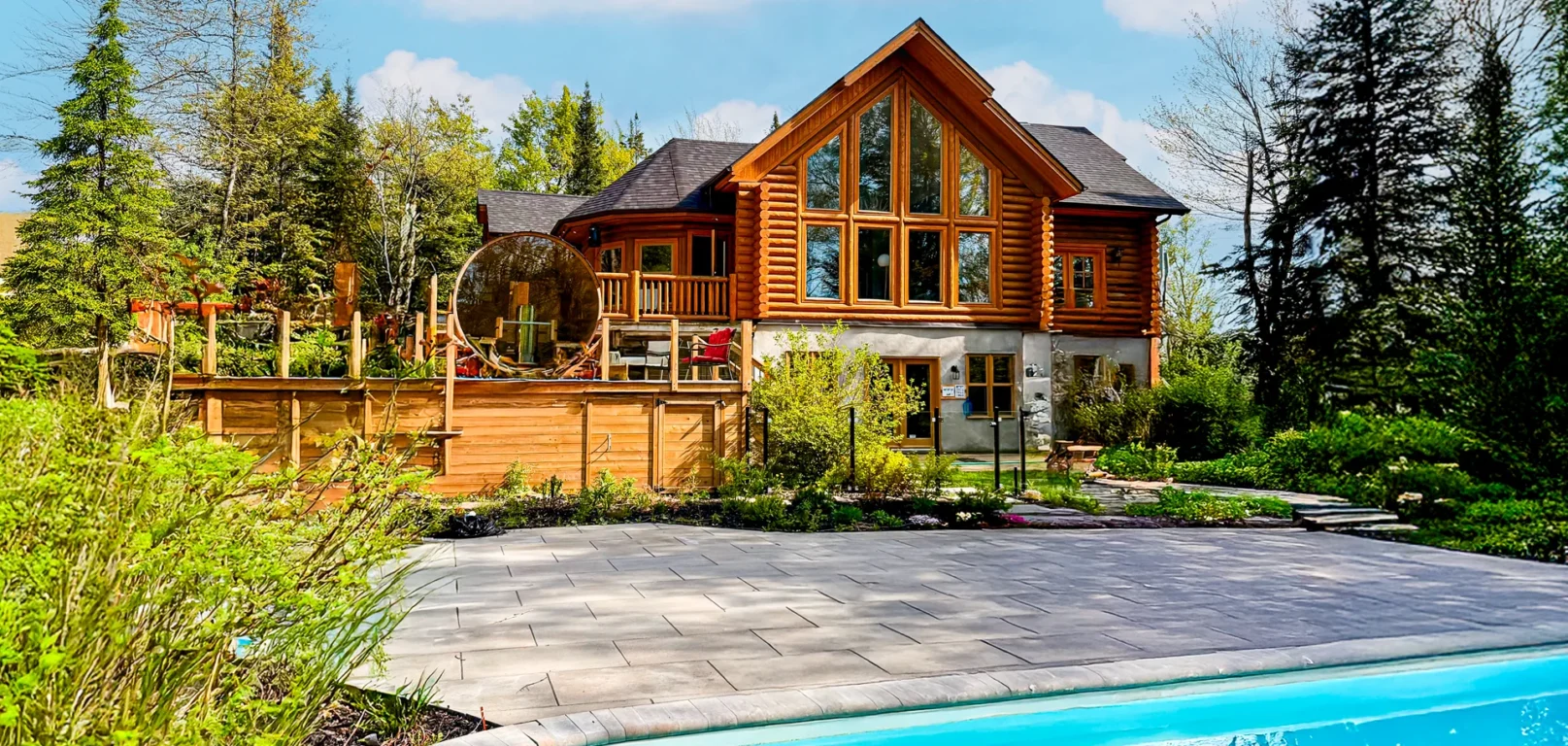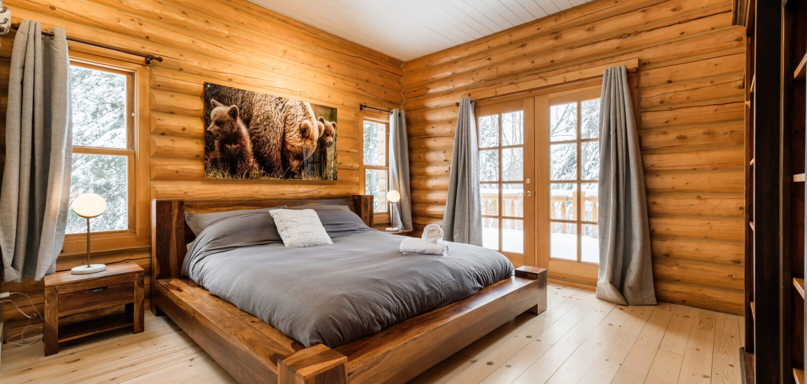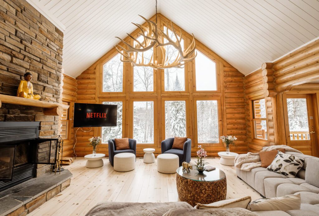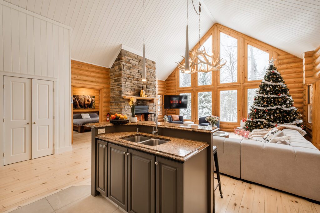 Le plus spacieux des Chalets Zenya, le Chalet Golden Bear est un chalet majestueux en bois rond situé au sein du prestigieux Domaine du Lac Fiddler, à la sortie de Morin Heights, dans la Vallée de Saint-Sauveur. Le chalet est situé sur un grand terrain boisé privé, d’une superficie de plus de 70,000 pieds carrés. À l’abri des voisins et des regards indiscrets, vous serez assurés d’y trouver tranquillité et intimité et de profiter pleinement de vos vacances! Relaxez en toute sérénité en profitant de notre spa et de notre sauna sec extérieur (disponibles à l’année longue) et de nombreuses activités à proximité. Notez que la piscine creusée extérieure chauffée est ouverte du 1er juin à fin septembre.