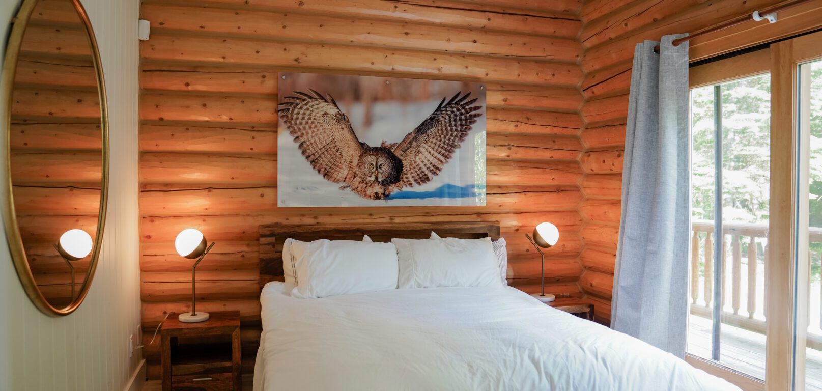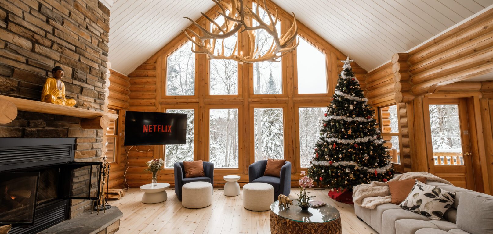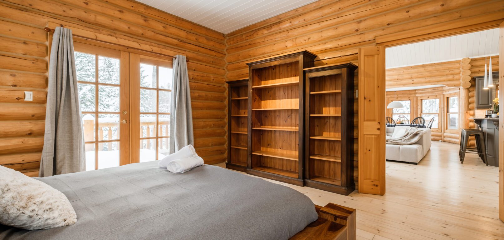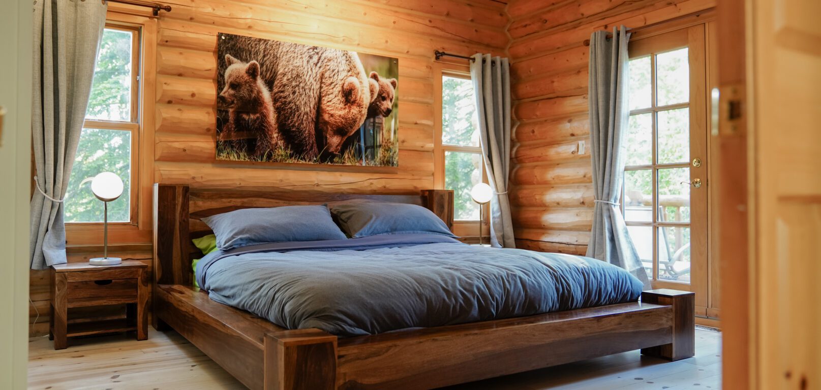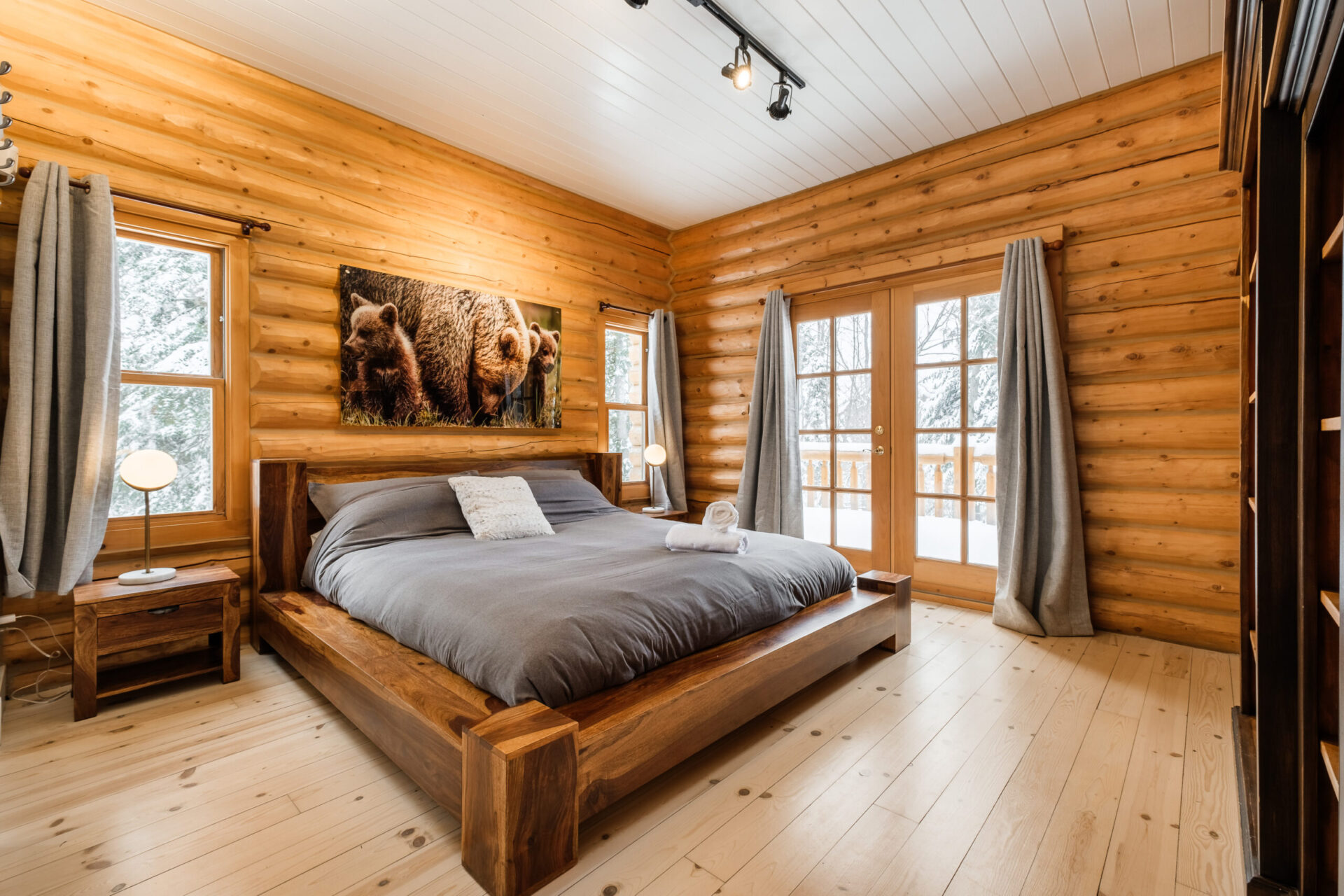 Le plus spacieux des Chalets Zenya, le Chalet Golden Bear est un chalet majestueux en bois rond situé au sein du prestigieux Domaine du Lac Fiddler, à la sortie de Morin Heights, dans la Vallée de Saint-Sauveur. Le chalet est situé sur un grand terrain boisé privé, d’une superficie de plus de 70,000 pieds carrés. À l’abri des voisins et des regards indiscrets, vous serez assurés d’y trouver tranquillité et intimité et de profiter pleinement de vos vacances! Relaxez en toute sérénité en profitant de notre spa et de notre sauna sec extérieur (disponibles à l’année longue) et de nombreuses activités à proximité. Notez que la piscine creusée extérieure chauffée est ouverte du 1er juin à fin septembre.