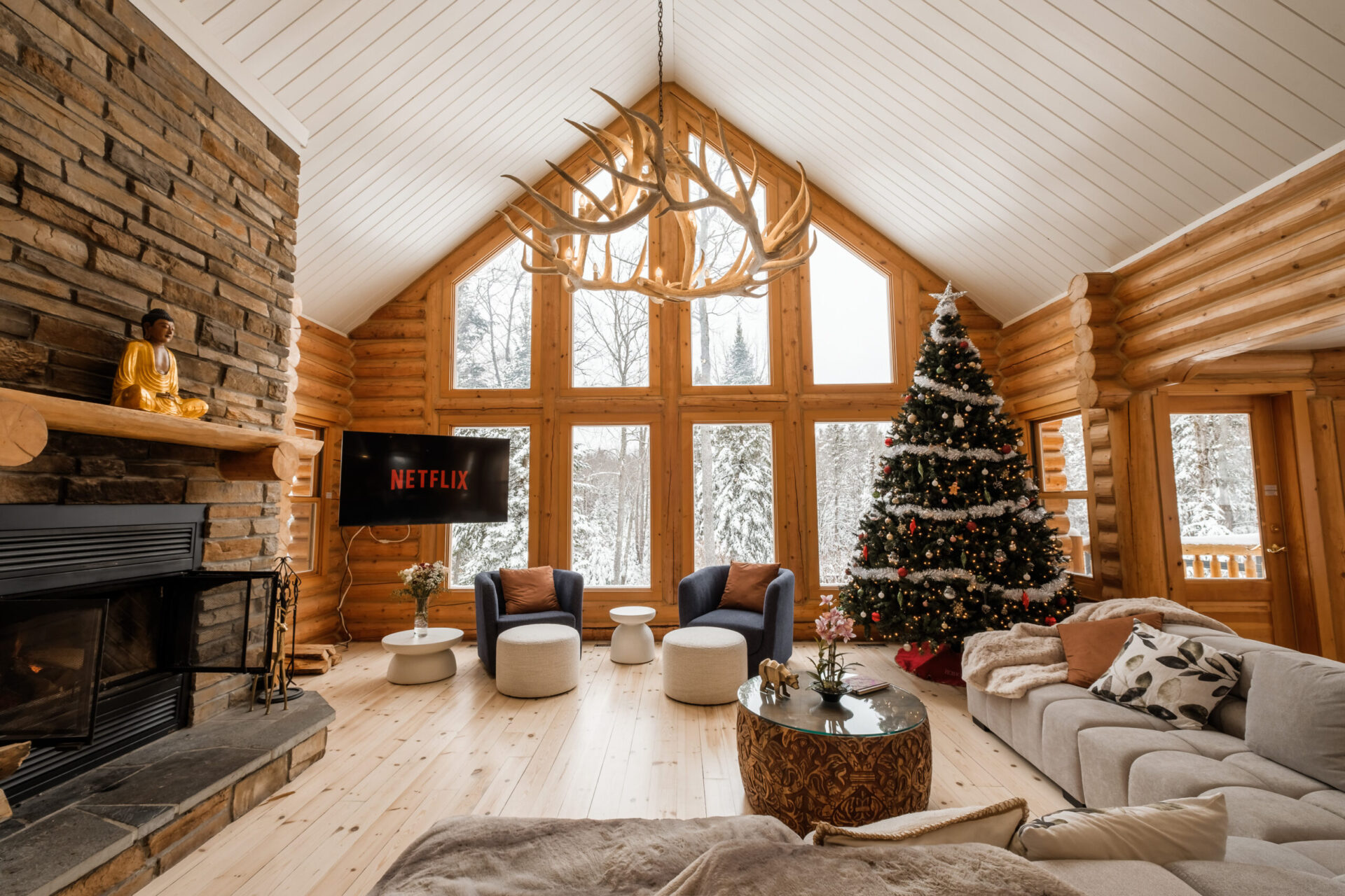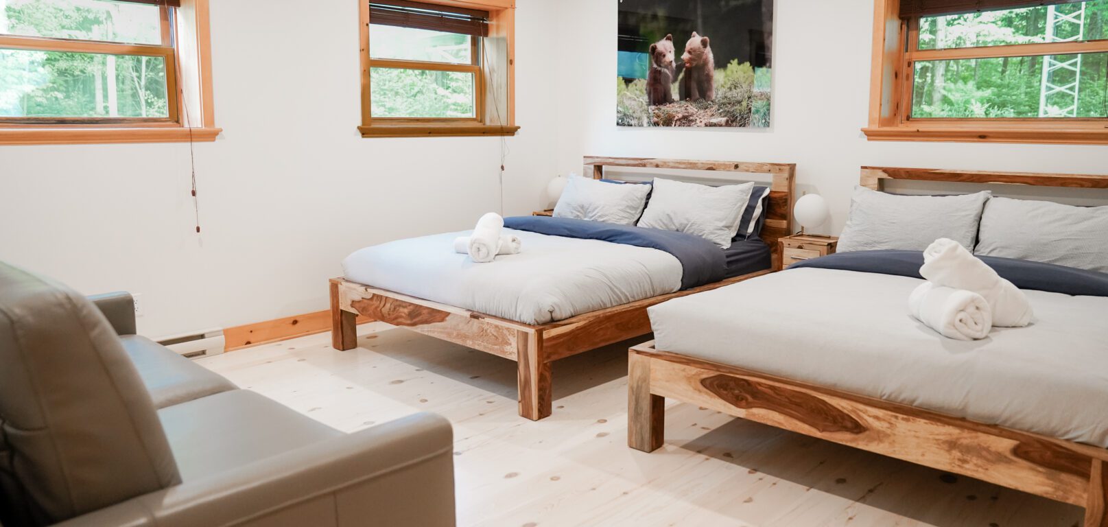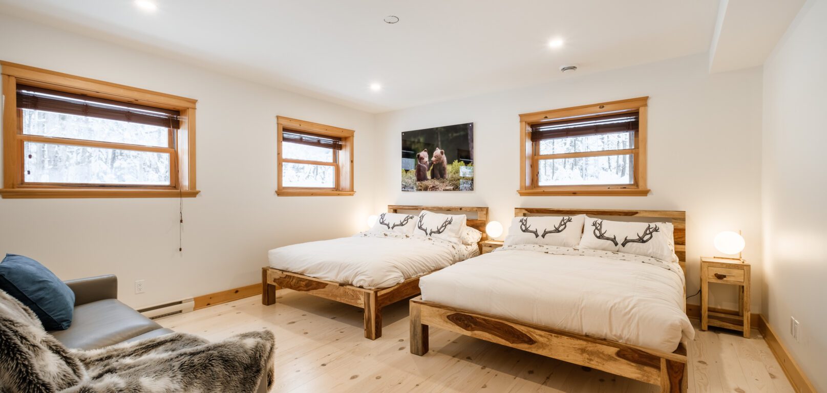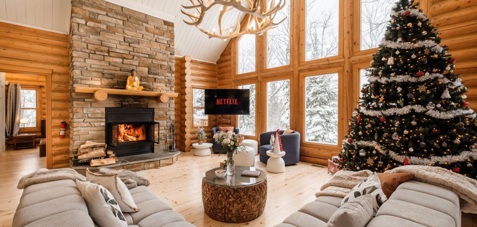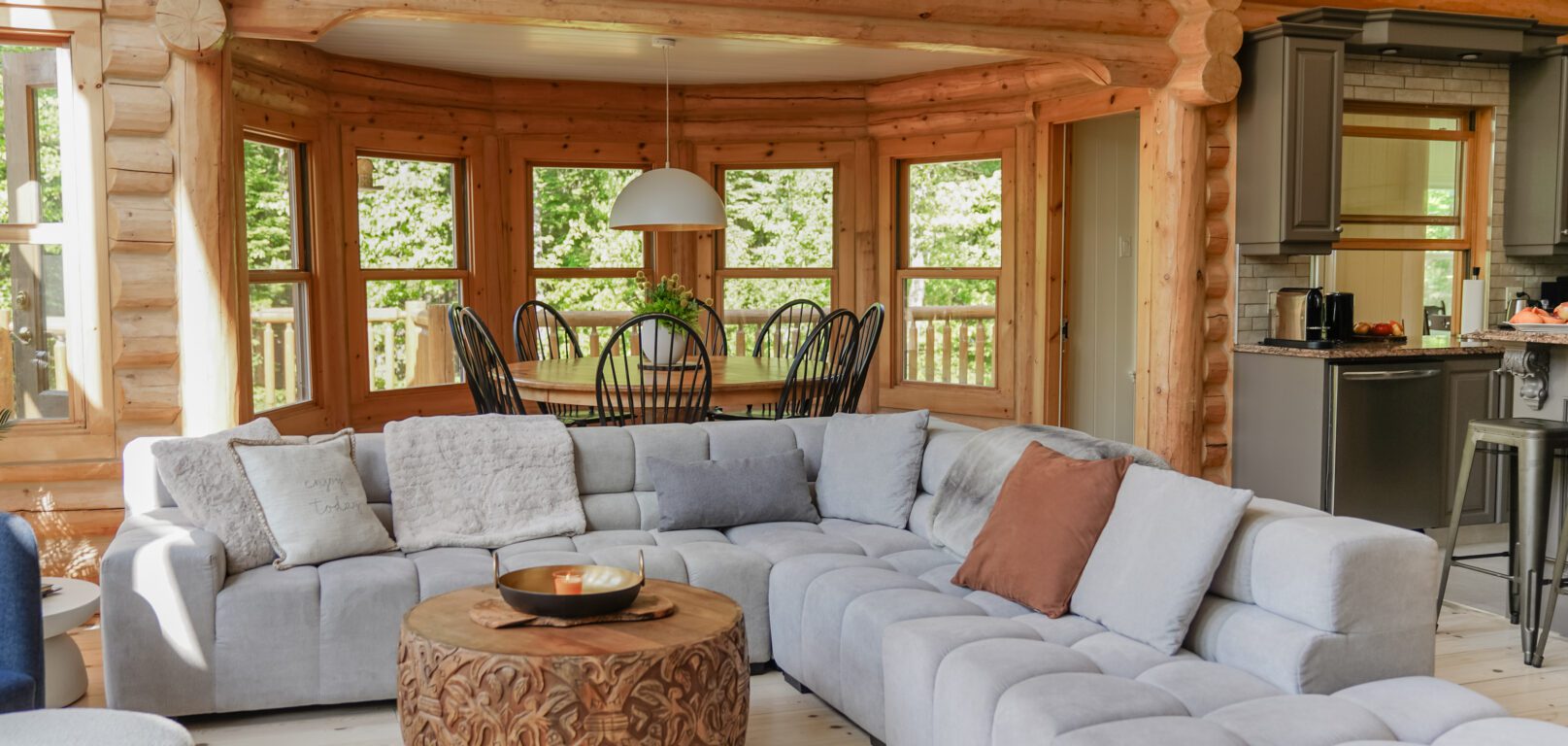 Le plus spacieux des Chalets Zenya, le Chalet Golden Bear est un chalet majestueux en bois rond situé au sein du prestigieux Domaine du Lac Fiddler, à la sortie de Morin Heights, dans la Vallée de Saint-Sauveur. Le chalet est situé sur un grand terrain boisé privé, d’une superficie de plus de 70,000 pieds carrés. À l’abri des voisins et des regards indiscrets, vous serez assurés d’y trouver tranquillité et intimité et de profiter pleinement de vos vacances! Relaxez en toute sérénité en profitant de notre spa et de notre sauna sec extérieur (disponibles à l’année longue) et de nombreuses activités à proximité. Notez que la piscine creusée extérieure chauffée est ouverte du 1er juin à fin septembre.