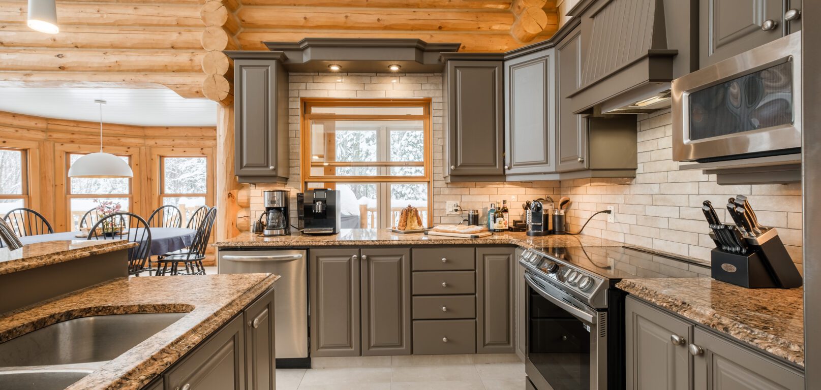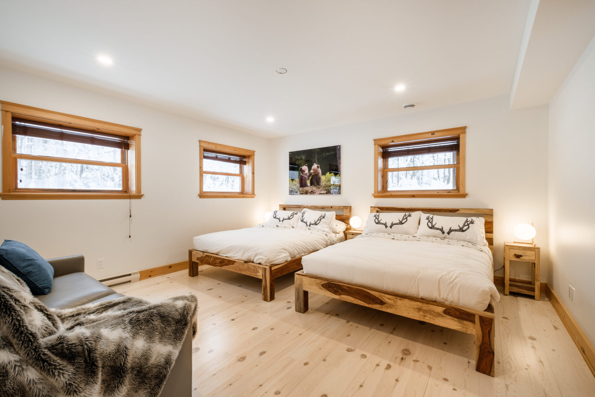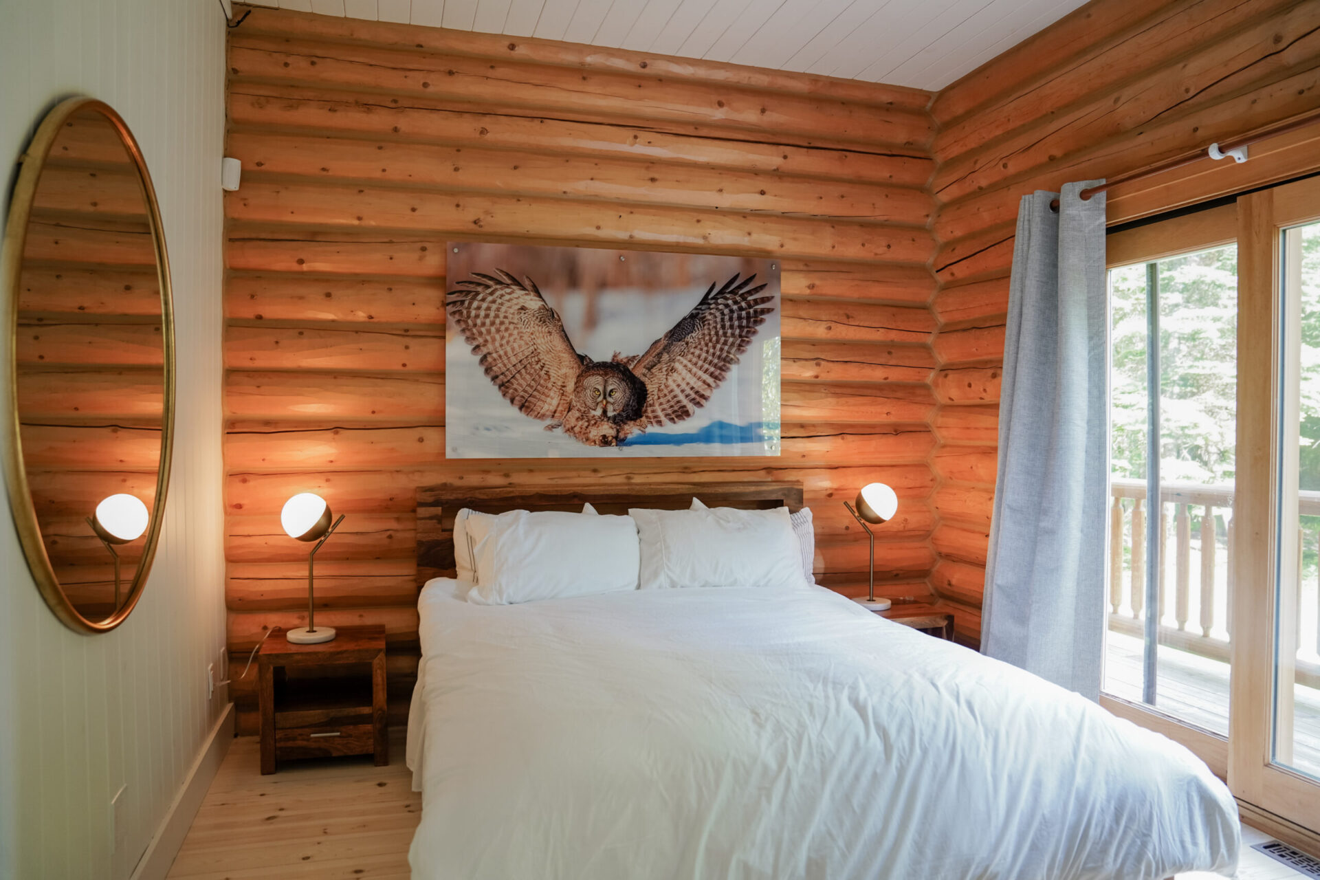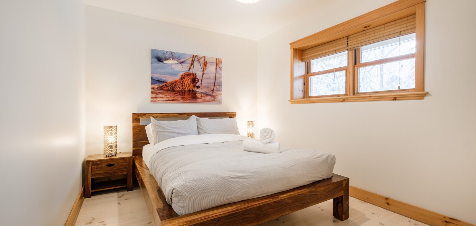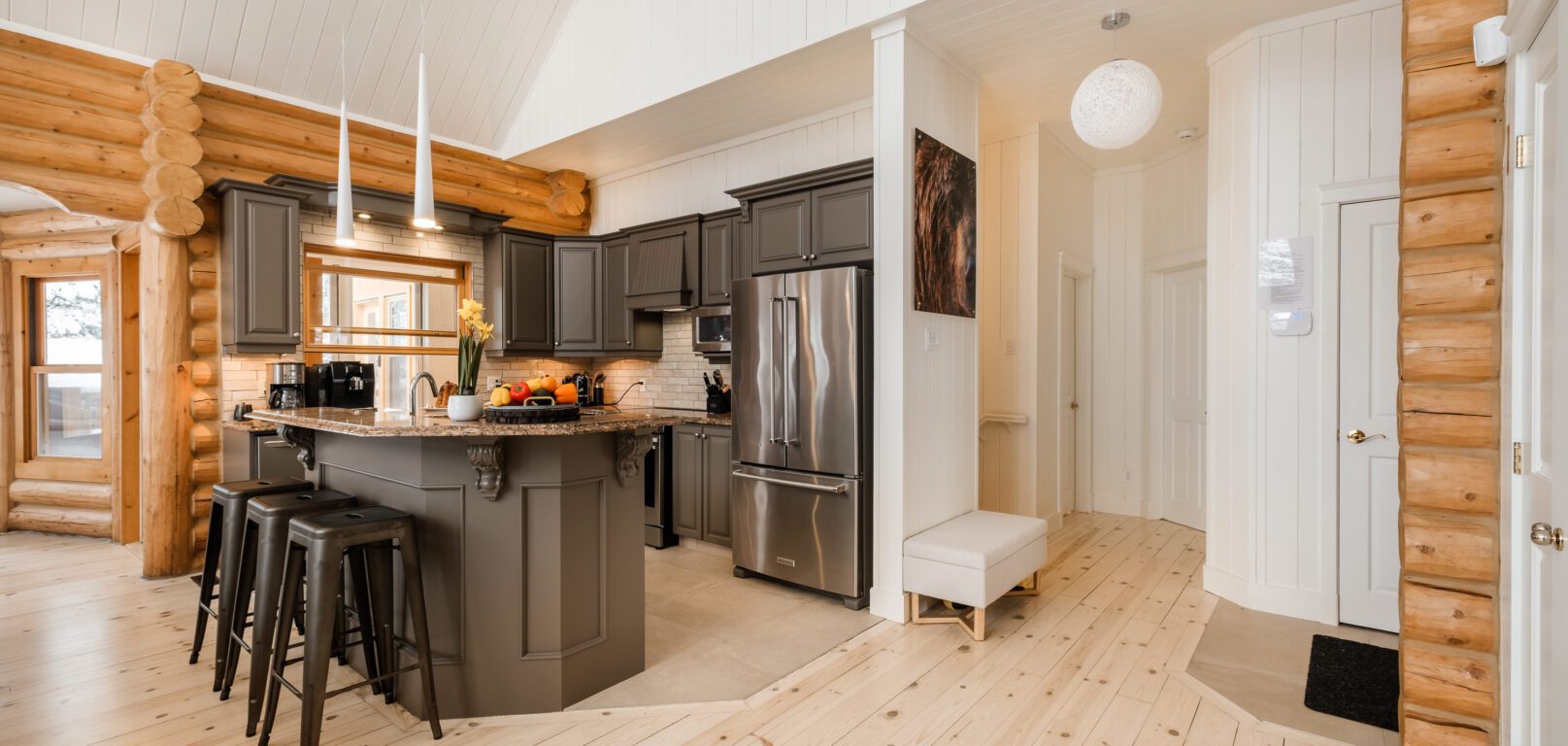 Le plus spacieux des Chalets Zenya, le Chalet Golden Bear est un chalet majestueux en bois rond situé au sein du prestigieux Domaine du Lac Fiddler, à la sortie de Morin Heights, dans la Vallée de Saint-Sauveur. Le chalet est situé sur un grand terrain boisé privé, d’une superficie de plus de 70,000 pieds carrés. À l’abri des voisins et des regards indiscrets, vous serez assurés d’y trouver tranquillité et intimité et de profiter pleinement de vos vacances! Relaxez en toute sérénité en profitant de notre spa et de notre sauna sec extérieur (disponibles à l’année longue) et de nombreuses activités à proximité. Notez que la piscine creusée extérieure chauffée est ouverte du 1er juin à fin septembre.