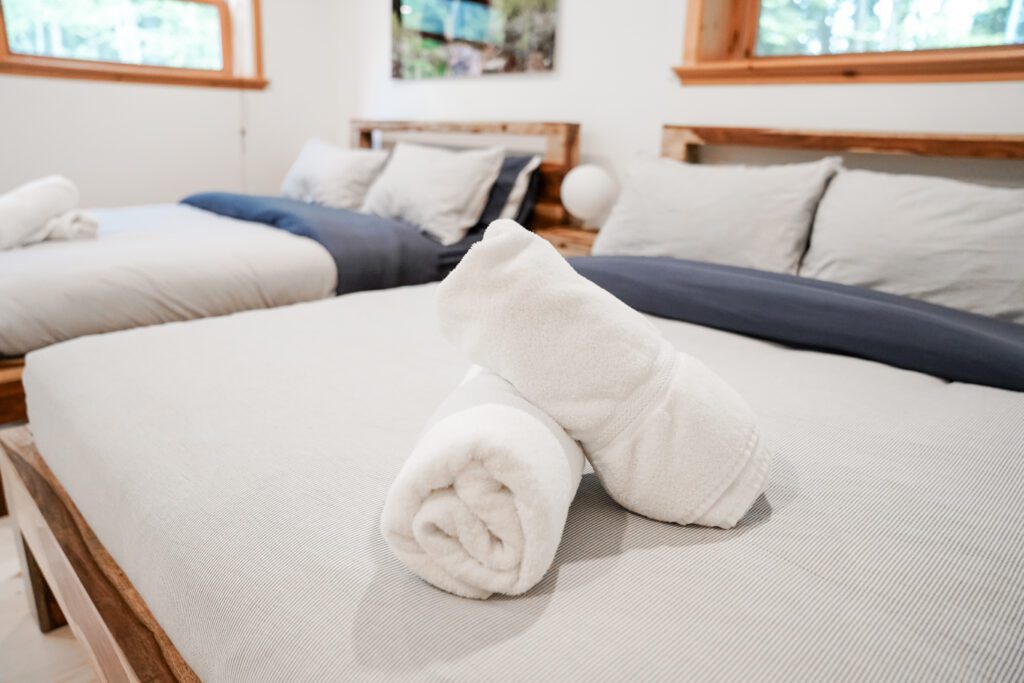 - Un dépôt de sécurité remboursable de 3000$ sera temporairement gelé sur votre carte de crédit 48h avant la date d’arrivée et sera relâché dans les 24h/48h suivant votre départ, si aucun dommage n’est constaté et si le chalet est remis dans le même état qu’à l’arrivée.