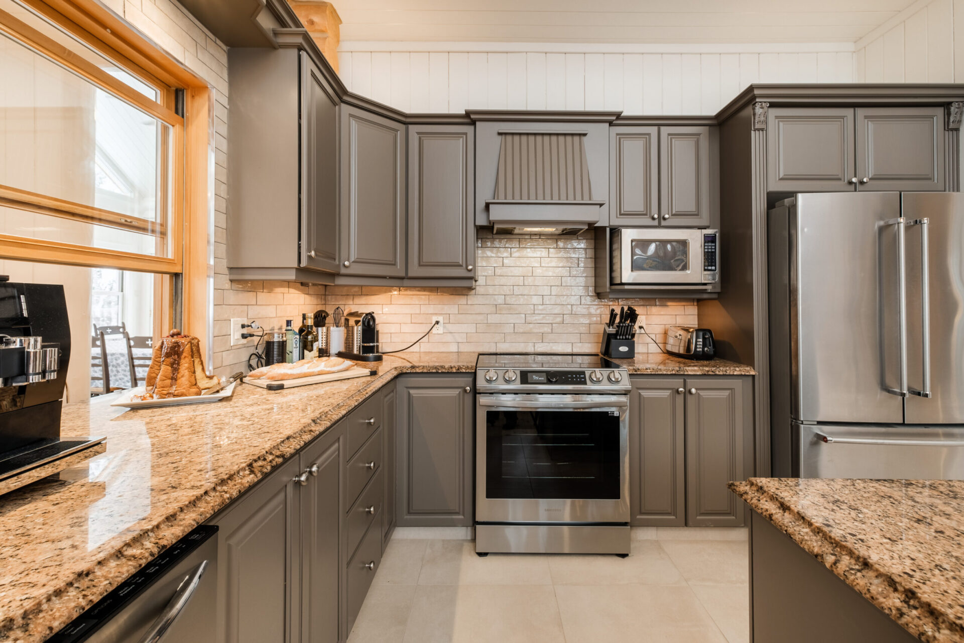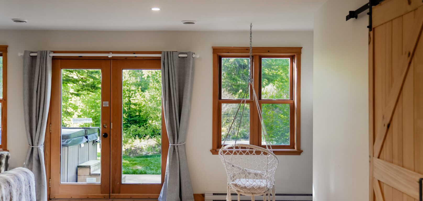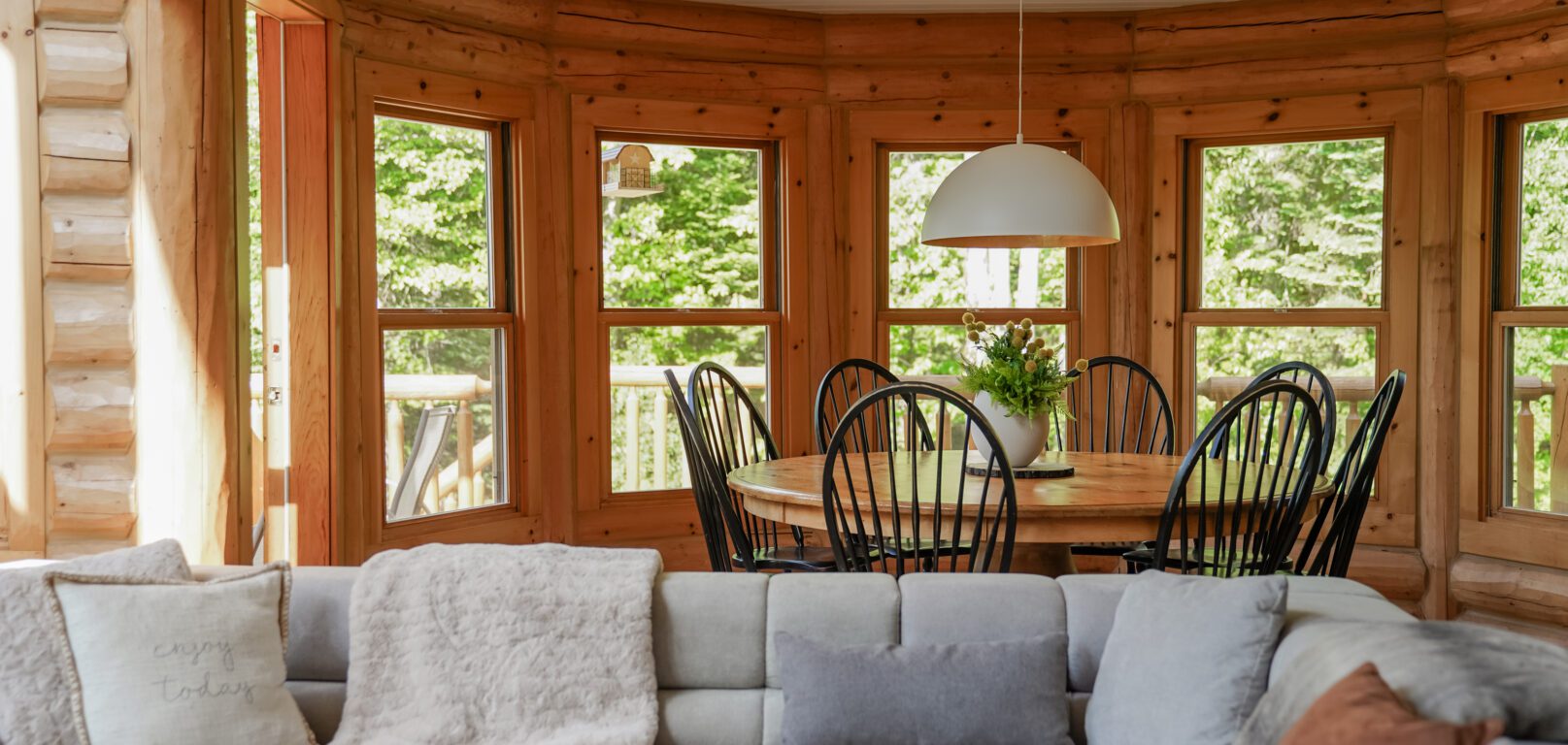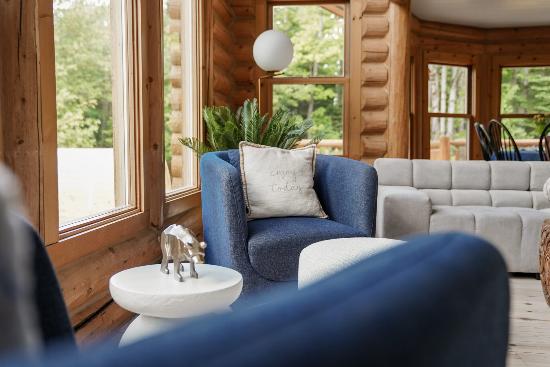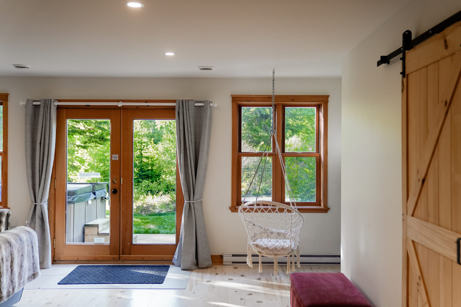 - un grand salon de style contemporain avec foyer au bois et système de son Bluetooth pour écouter votre musique préférée;