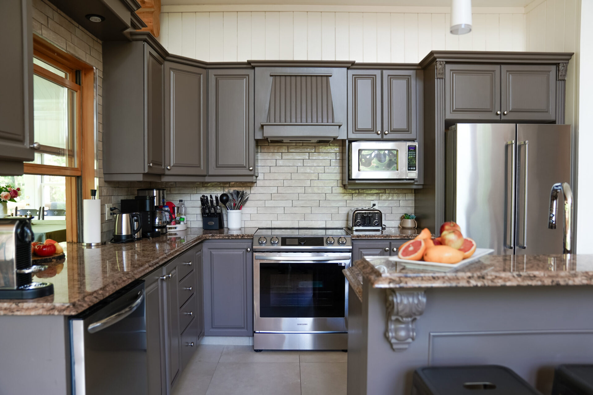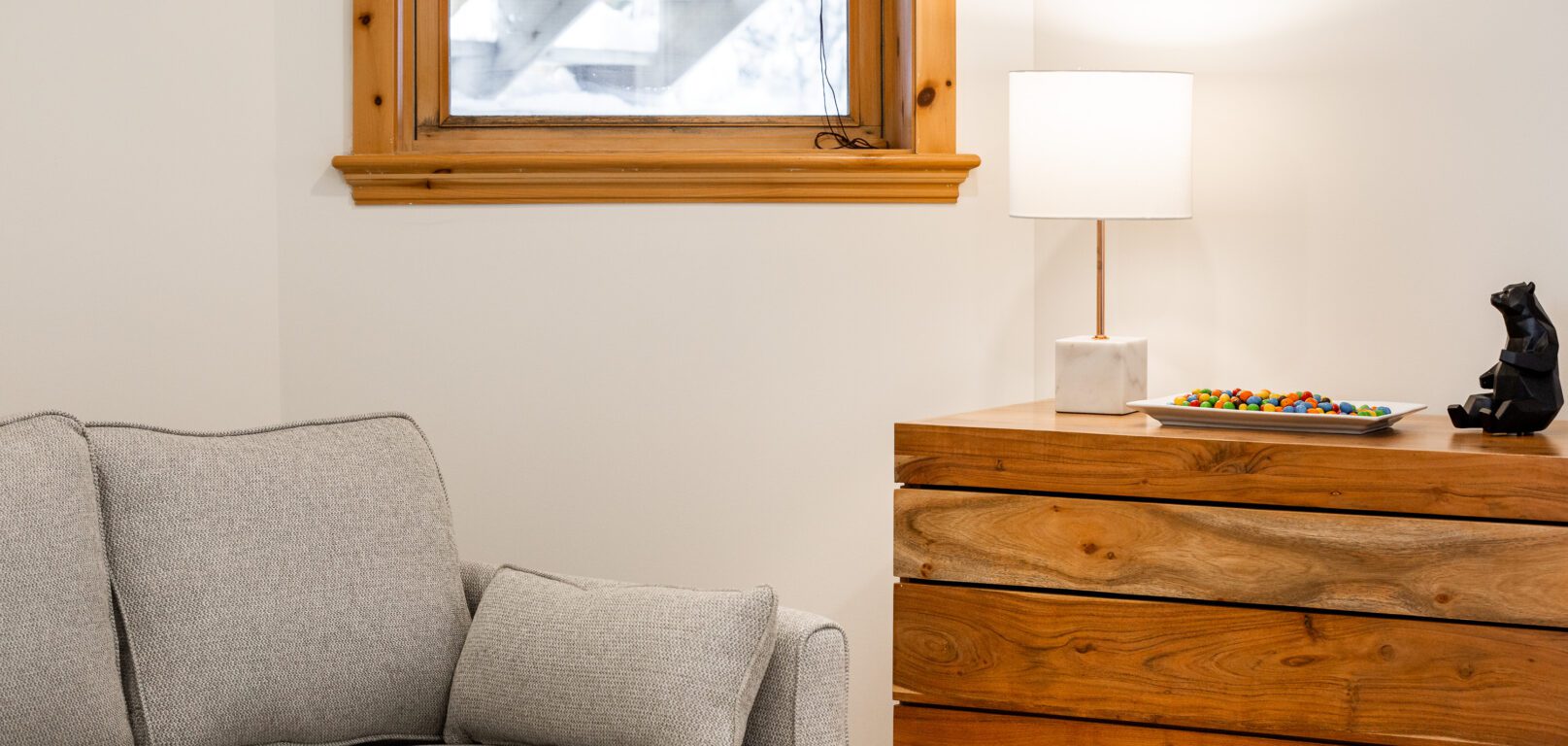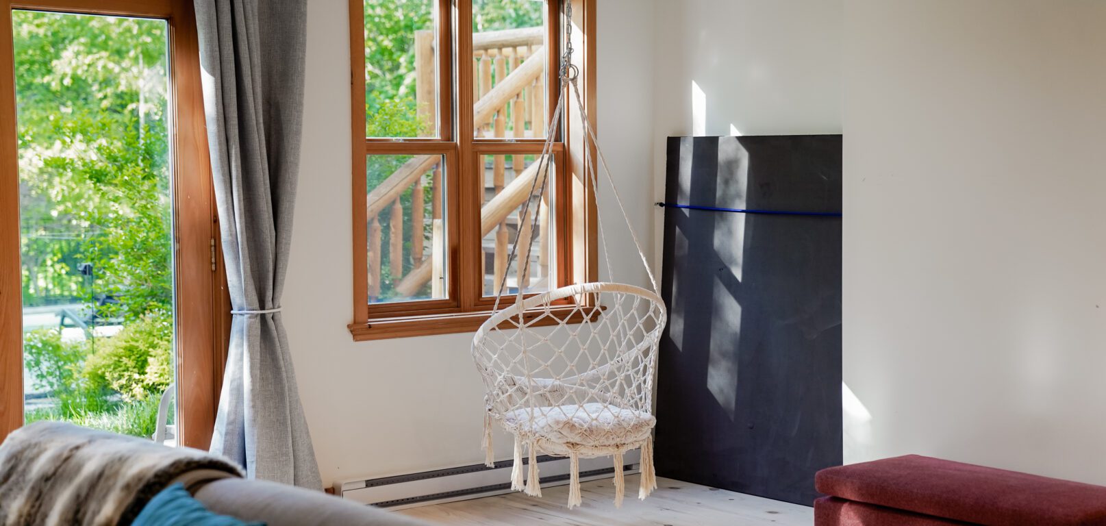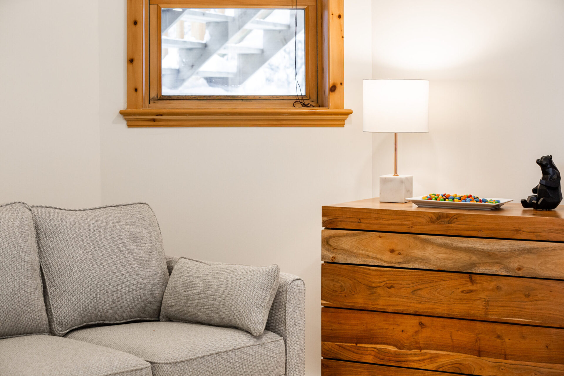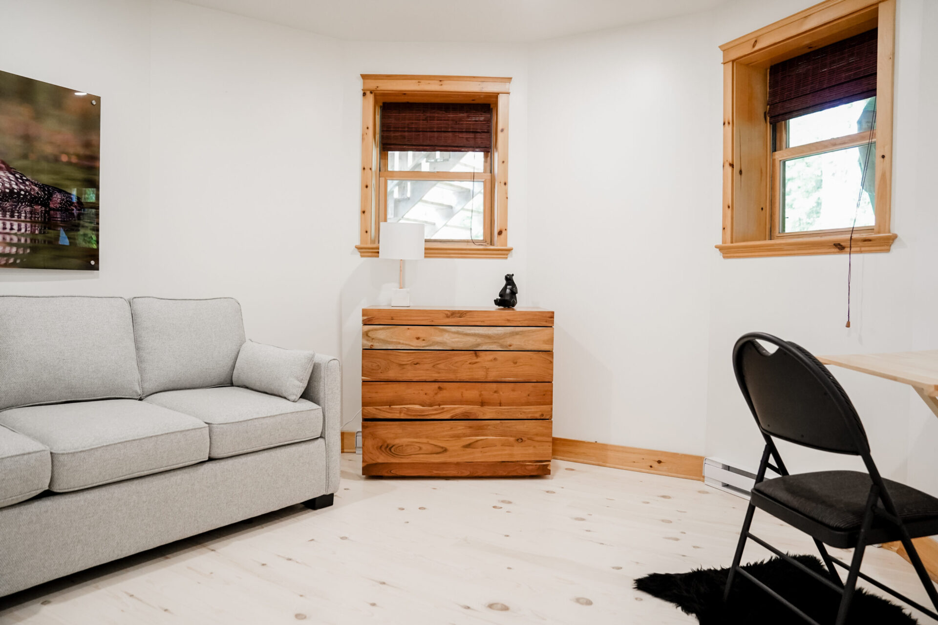 - un grand salon de style contemporain avec foyer au bois et système de son Bluetooth pour écouter votre musique préférée;