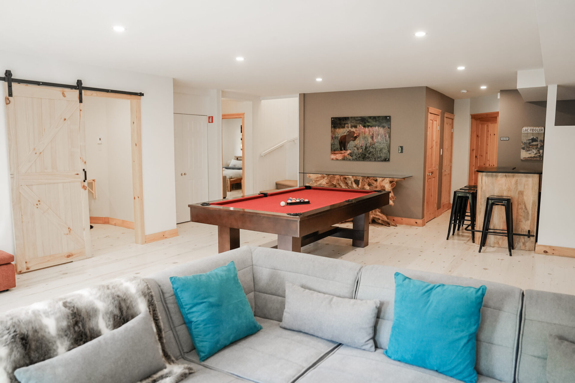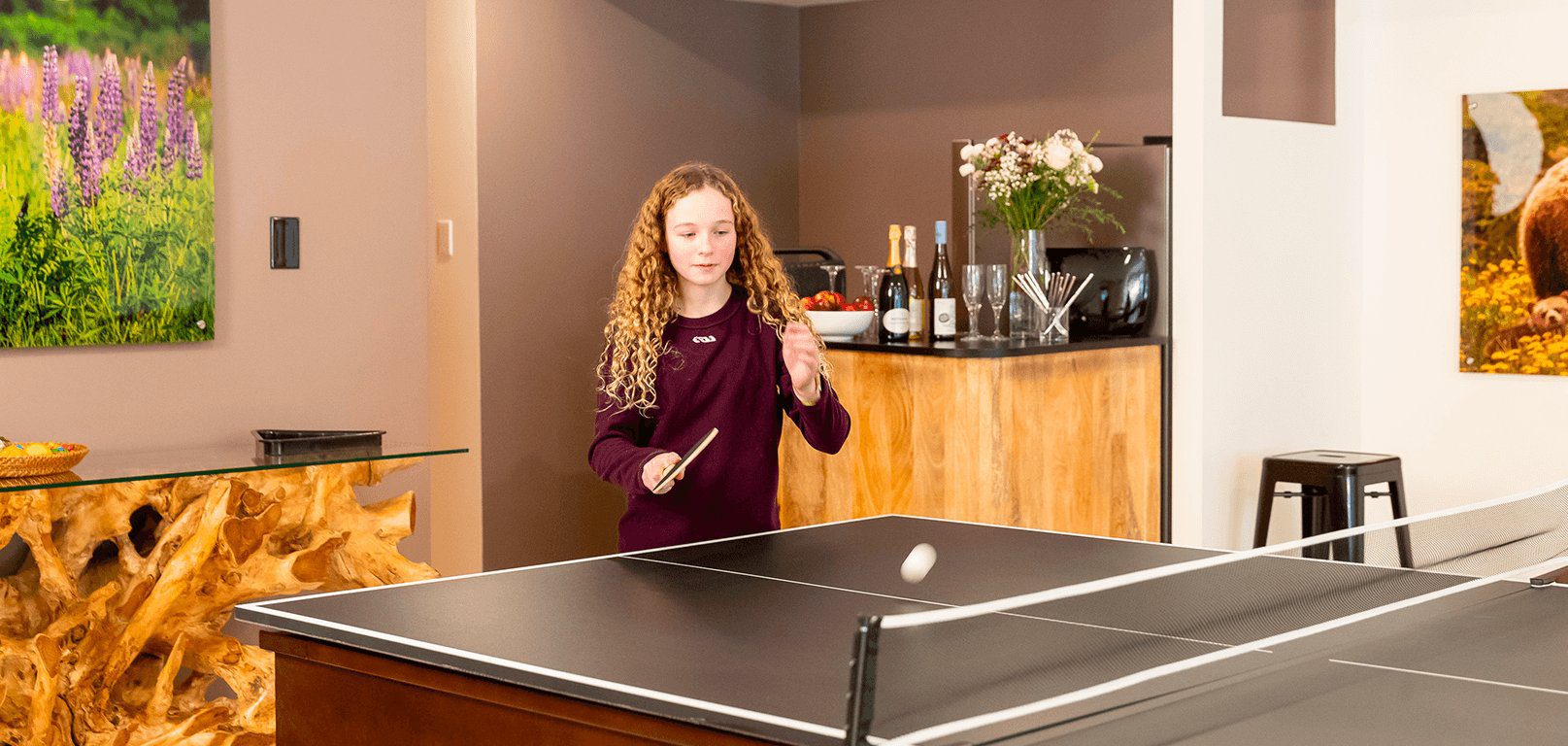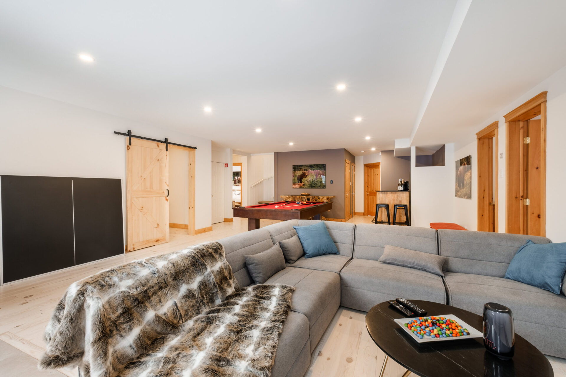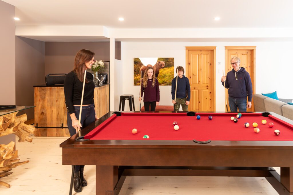 - Une grande salle de jeu avec table de billard et ping pong