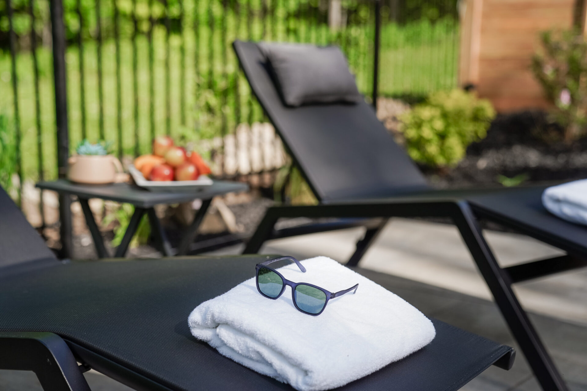 - accès au niveau jardin avec la piscine extérieure chauffée et sa grande terrasse de 800 pieds carrés clôturée, le spa 6 places et le sauna sec extérieur 8 places, le coin feu et détente