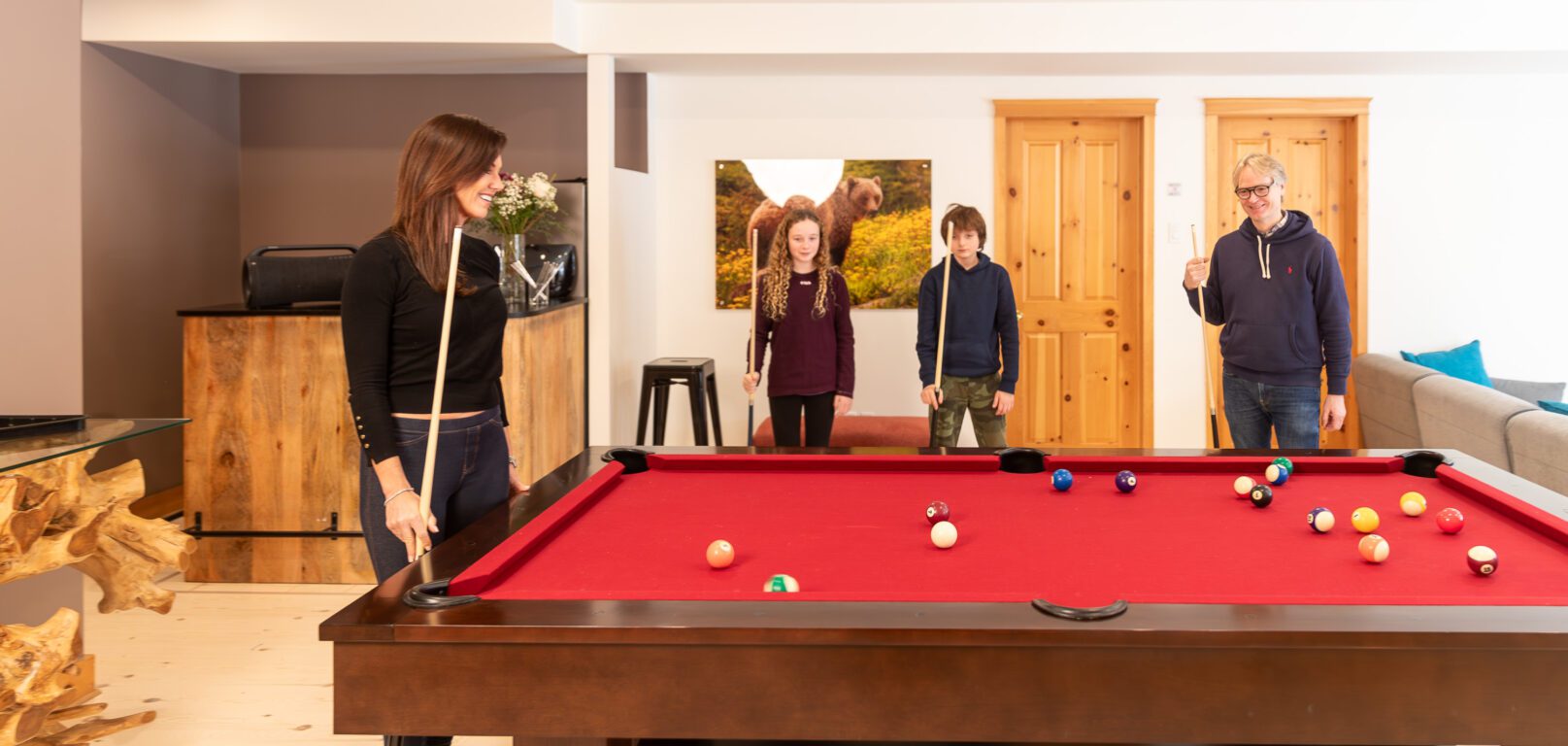 - une grande salle de jeu avec table de billard convertible en table de ping pong
