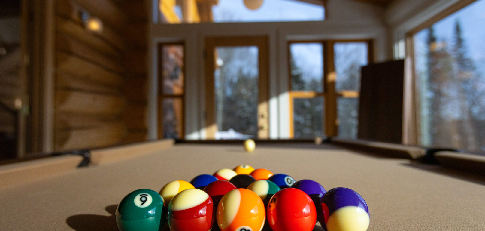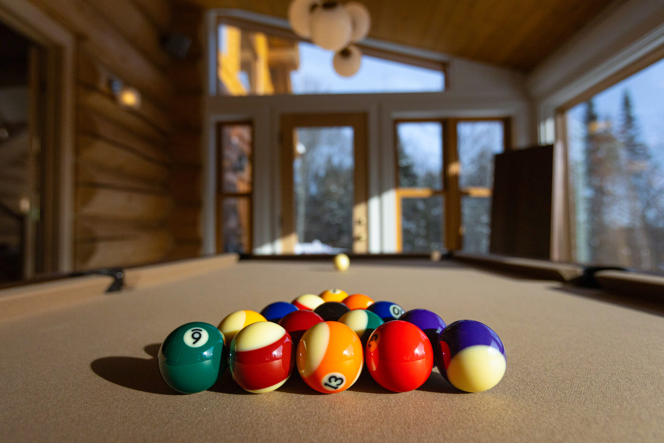 - un splendide solarium avec une grande table à manger convertible en table de billard et un coin salon détente avec canapé sectionnel, télévision intelligente et Blu-Ray.