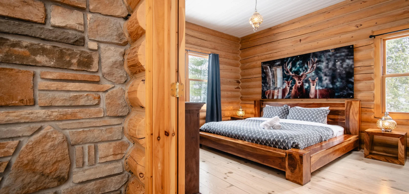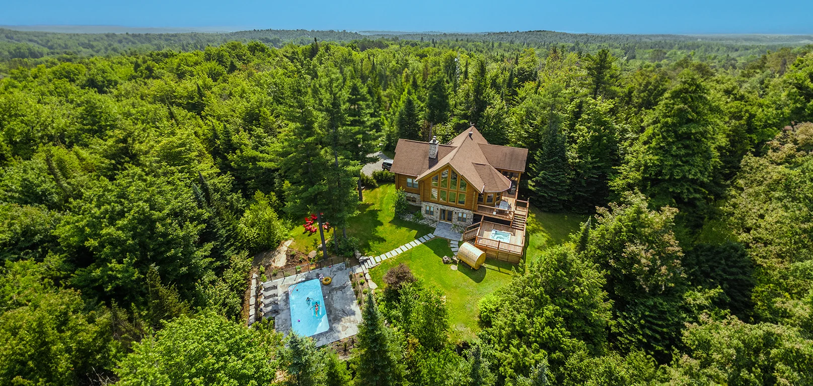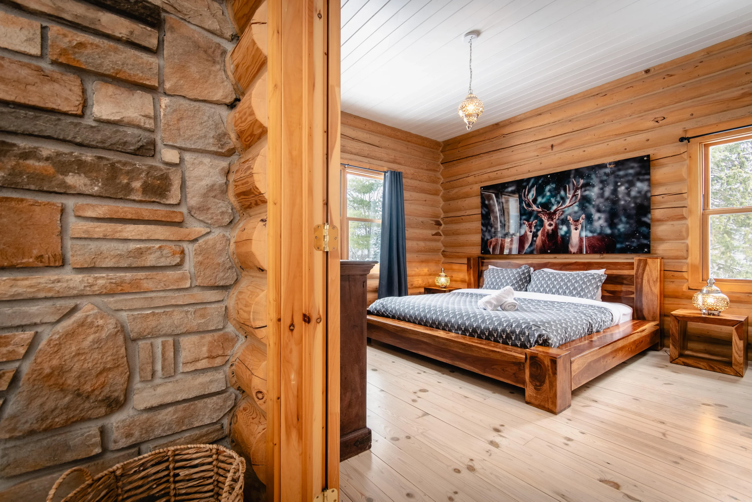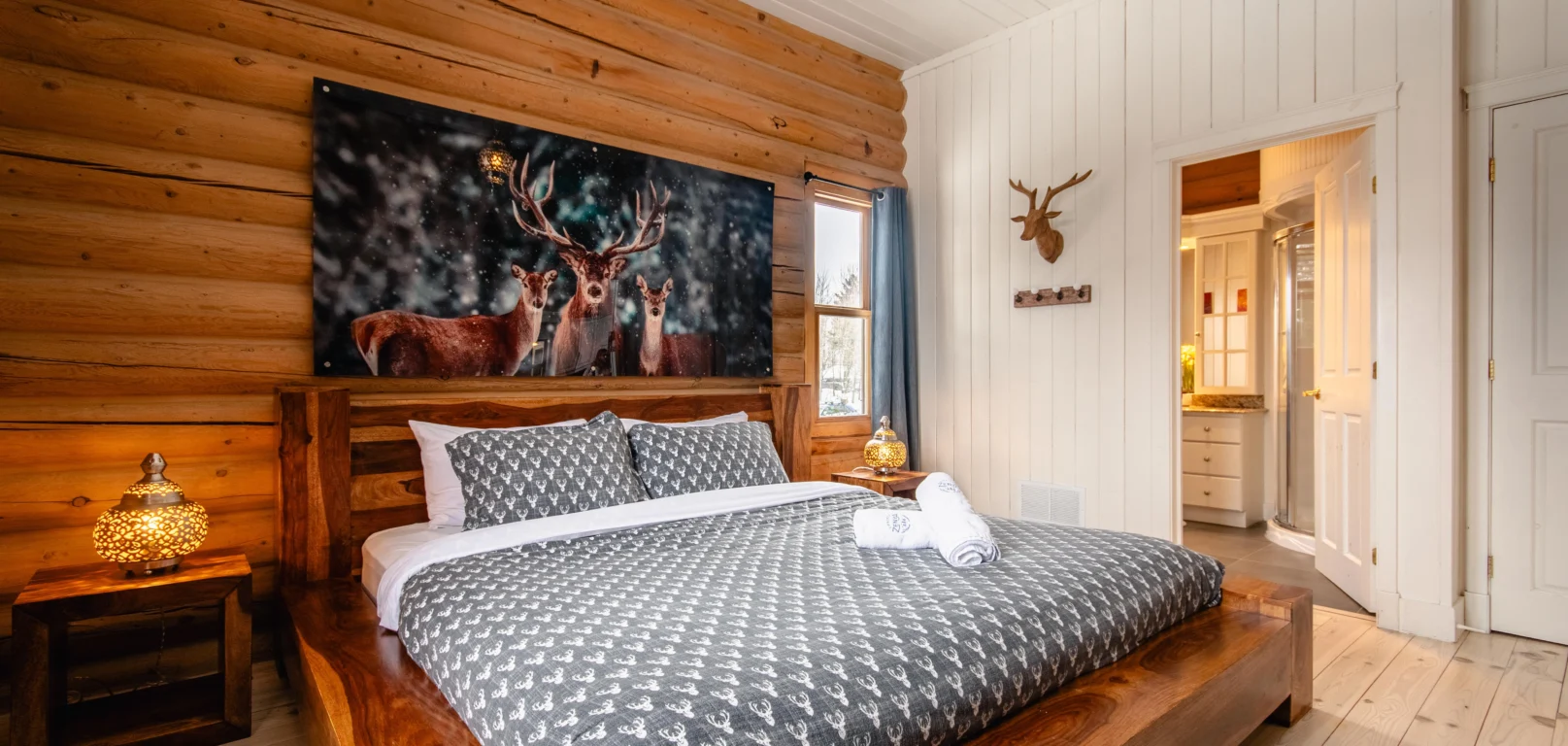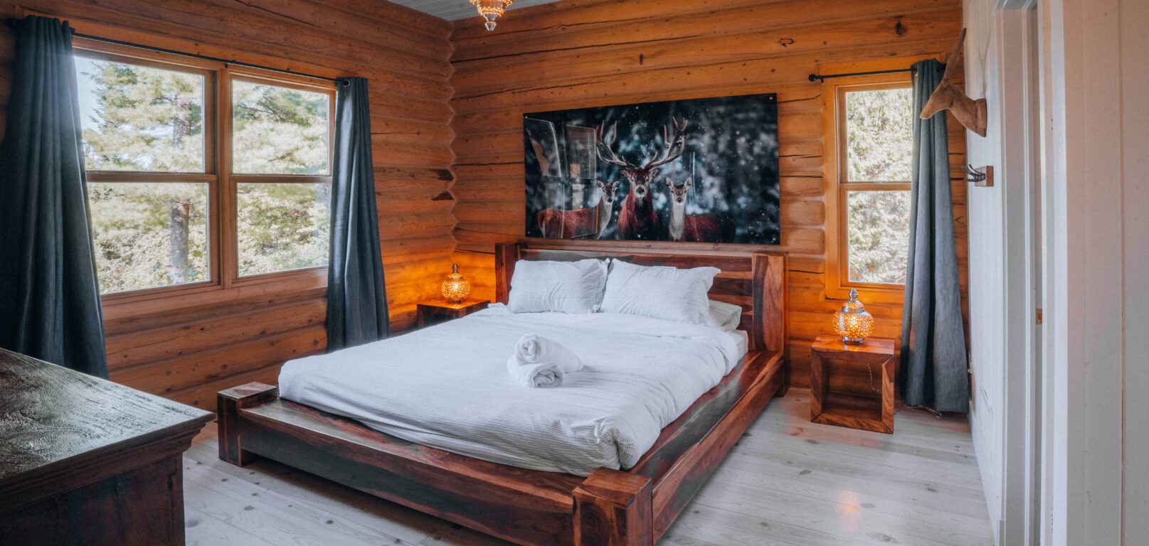 Dernier né des Chalets Zenya, le Chalet Red Deer est un splendide chalet en bois rond situé au sein du prestigieux Domaine du Lac Fiddler, à la sortie de Morin Heights, dans la Vallée de Saint-Sauveur. Le chalet est situé sur un grand terrain boisé privé, d’une superficie de plus de 65,000 pieds carrés. À l’abri des voisins et des regards indiscrets, vous serez assurés d’y trouver tranquillité et intimité et de profiter pleinement de vos vacances! Relaxez en toute sérénité en profitant de notre spa et de notre sauna sec extérieur (disponibles à l’année longue) et de nombreuses activités à proximité. Notez que la piscine creusée extérieure chauffée est ouverte du 1er juin à fin septembre.