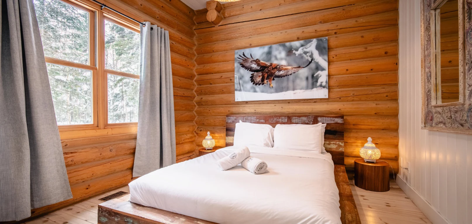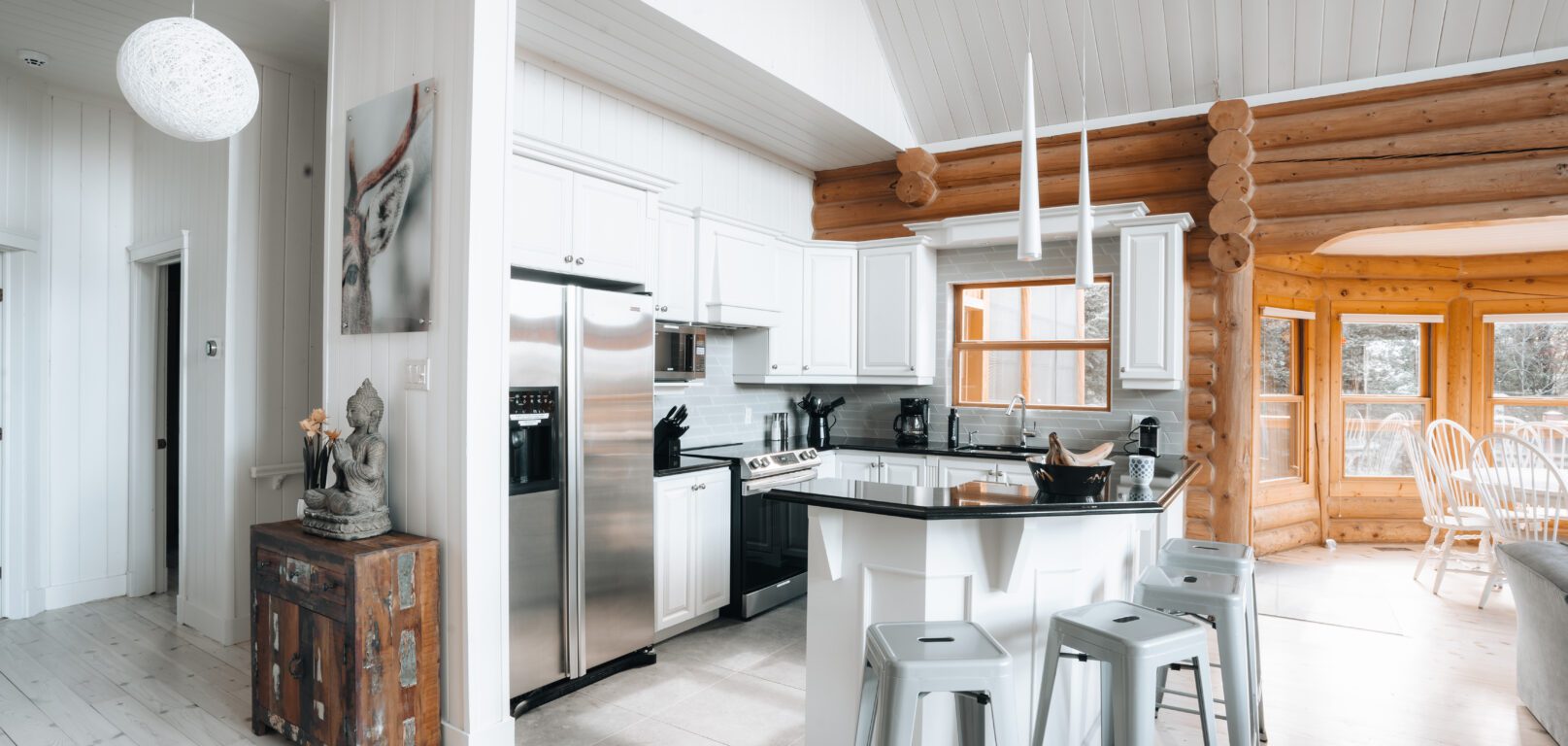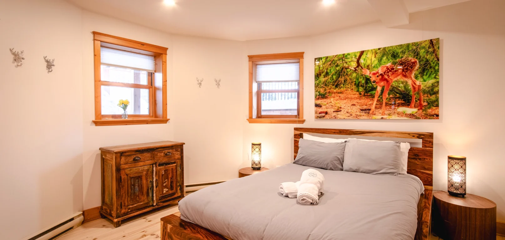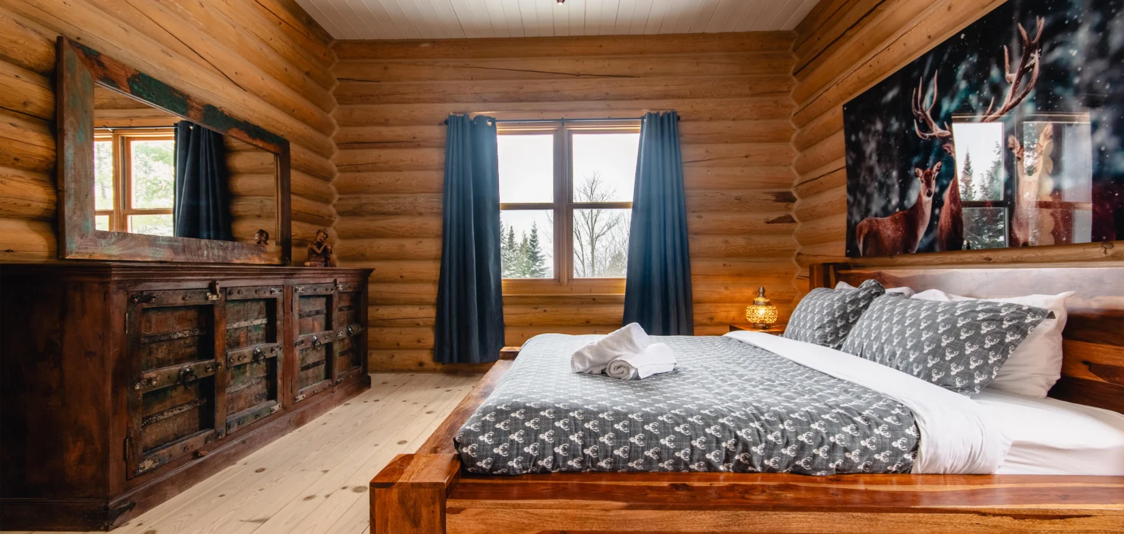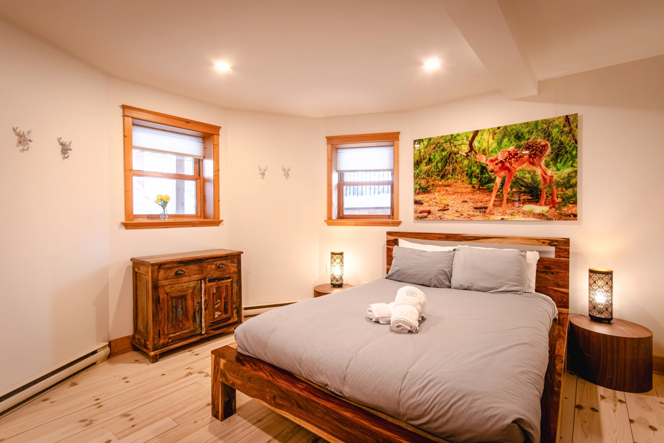 Dernier né des Chalets Zenya, le Chalet Red Deer est un splendide chalet en bois rond situé au sein du prestigieux Domaine du Lac Fiddler, à la sortie de Morin Heights, dans la Vallée de Saint-Sauveur. Le chalet est situé sur un grand terrain boisé privé, d’une superficie de plus de 65,000 pieds carrés. À l’abri des voisins et des regards indiscrets, vous serez assurés d’y trouver tranquillité et intimité et de profiter pleinement de vos vacances! Relaxez en toute sérénité en profitant de notre spa et de notre sauna sec extérieur (disponibles à l’année longue) et de nombreuses activités à proximité. Notez que la piscine creusée extérieure chauffée est ouverte du 1er juin à fin septembre.