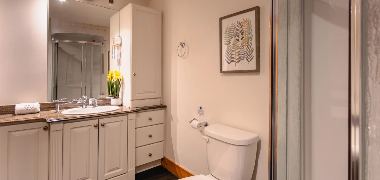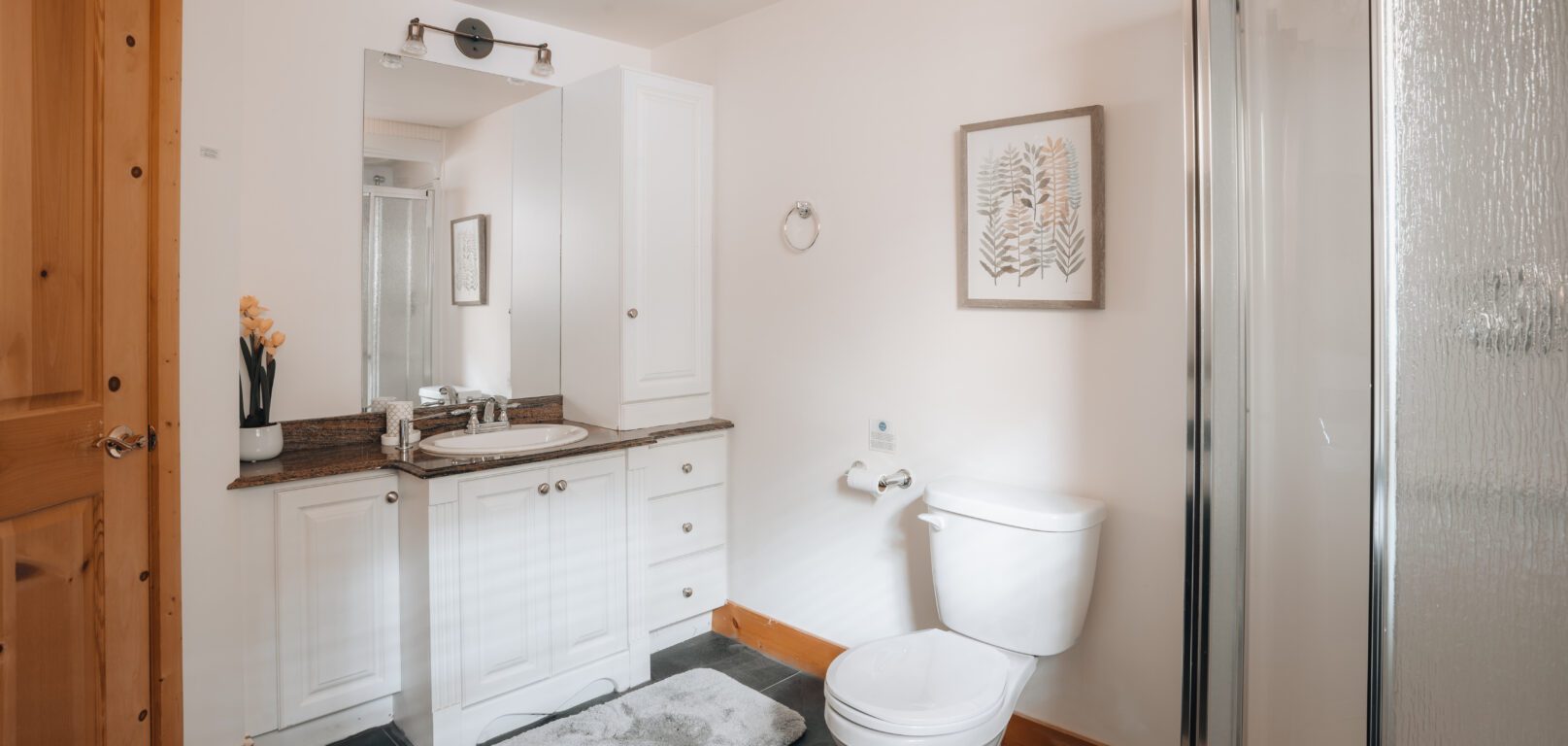 - une grande chambre avec 1 lit Queen et sa salle de bain complète