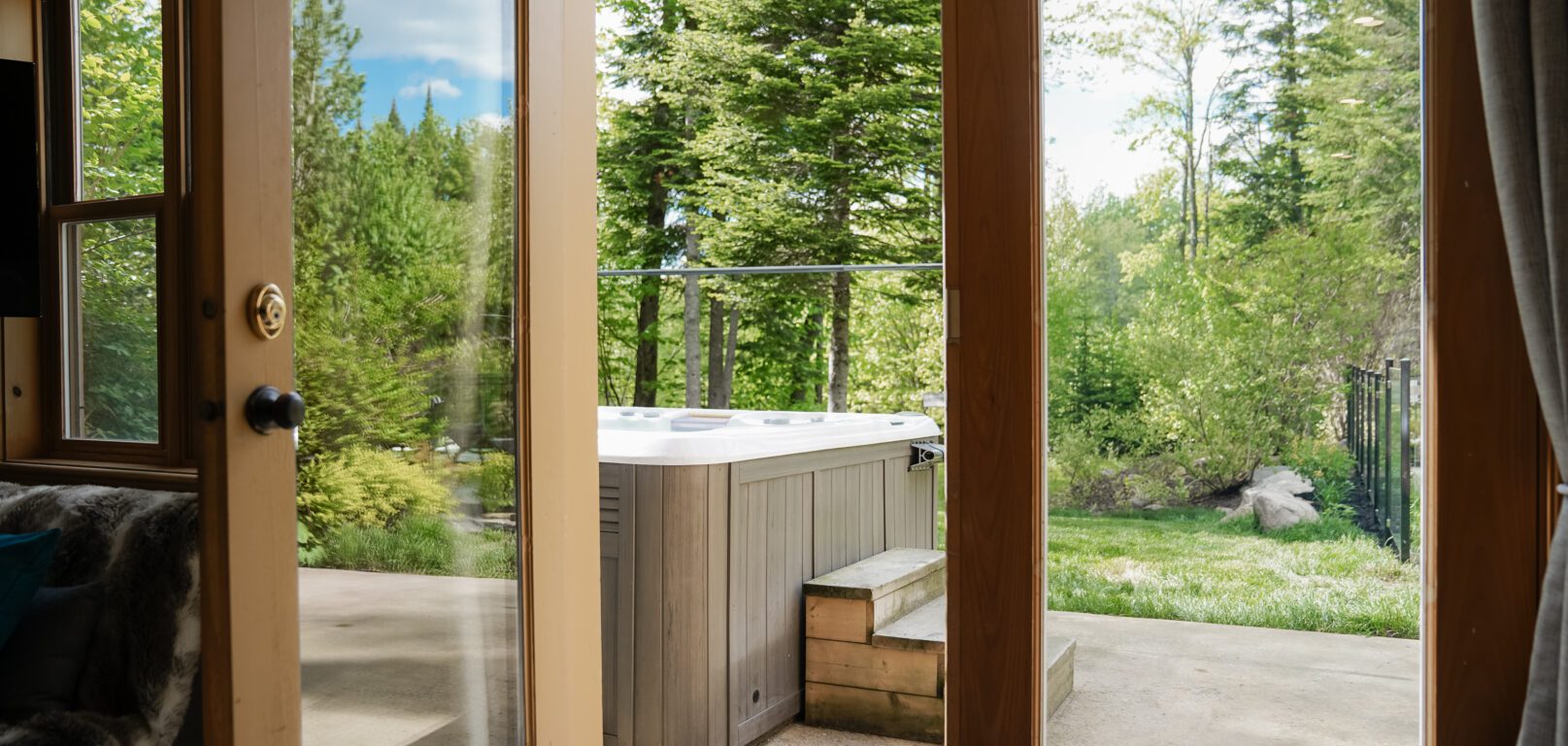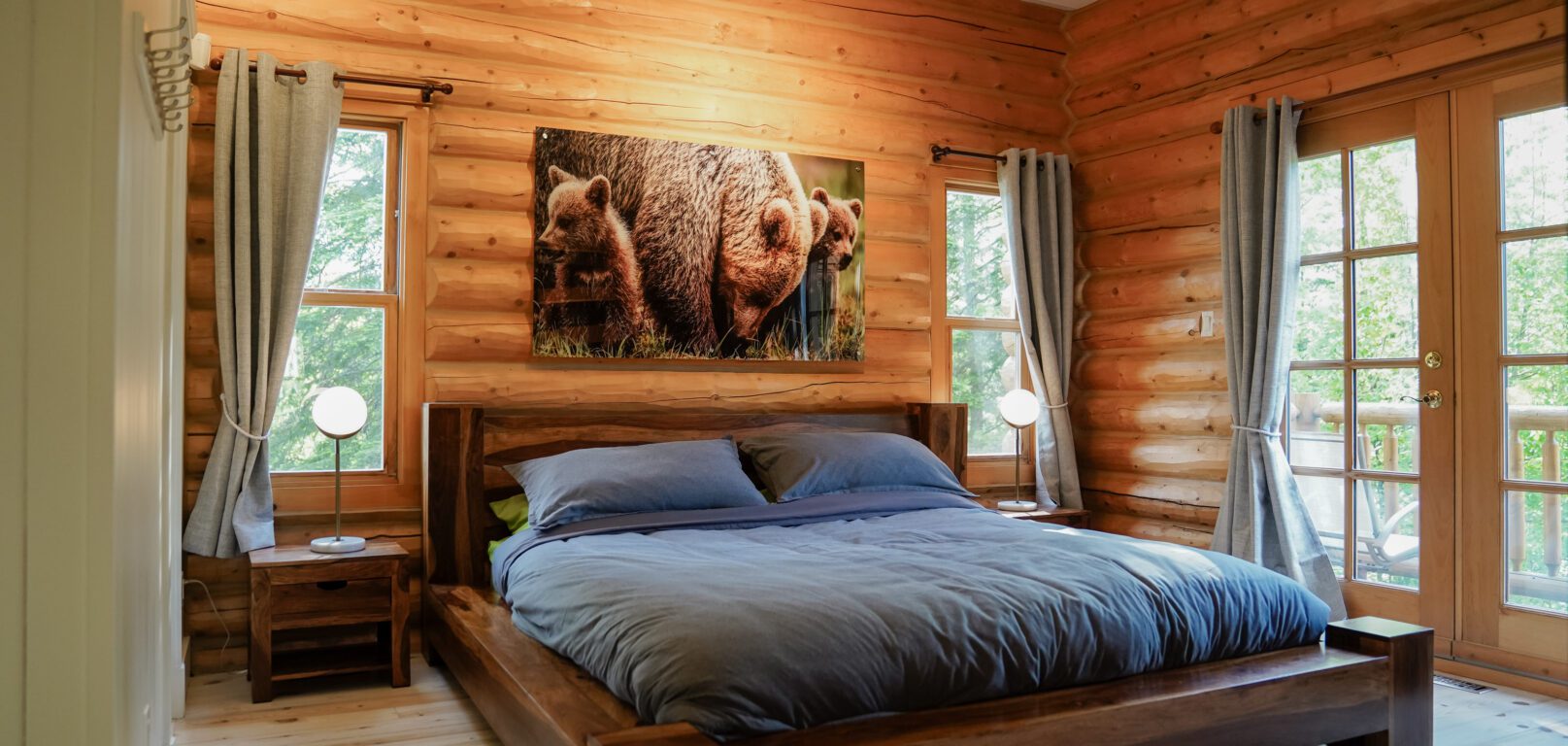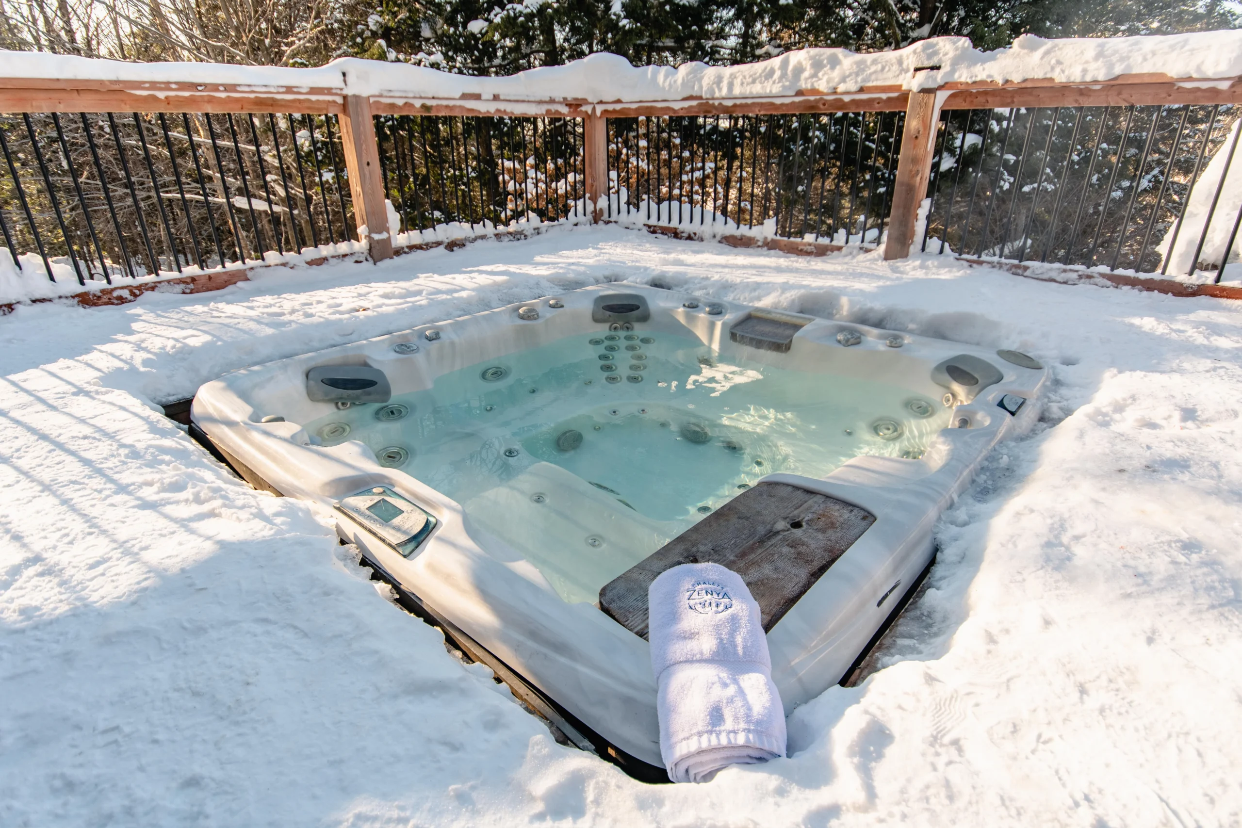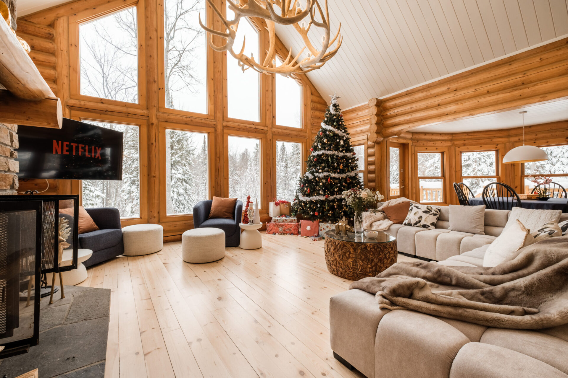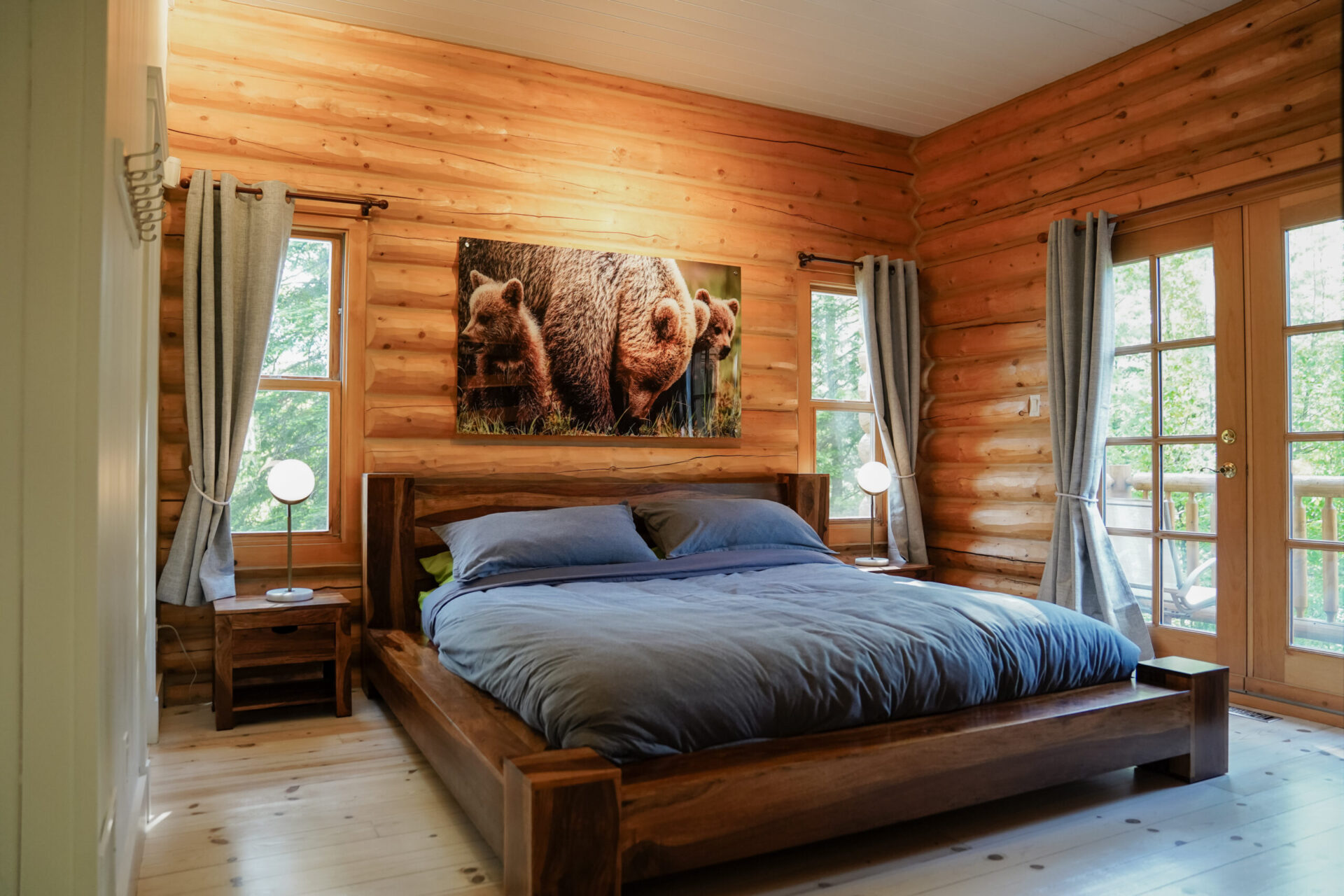 Last born of the Chalets Zenya family, Chalet Golden Bear is a splendid contemporary redesigned log cabin with a private in-ground heated pool, hot tub and outdoor dry sauna. It is located within the prestigious Fiddler Lake Resort, just outside of Morin Heights, in the Saint-Sauveur Valley. The chalet sits on a large private wooded lot, with an area of ​​over 70,000 sq.ft. Sheltered from neighbours and prying eyes, you have all the peace and privacy you need to completely enjoy your vacation. Relax at the cottage with your friends or family, enjoy many activities around and unwind in the hot tub and outdoor dry sauna (both open all year round). The heated in-ground outdoor swimming pool is accessible from June 1st to the end of September.