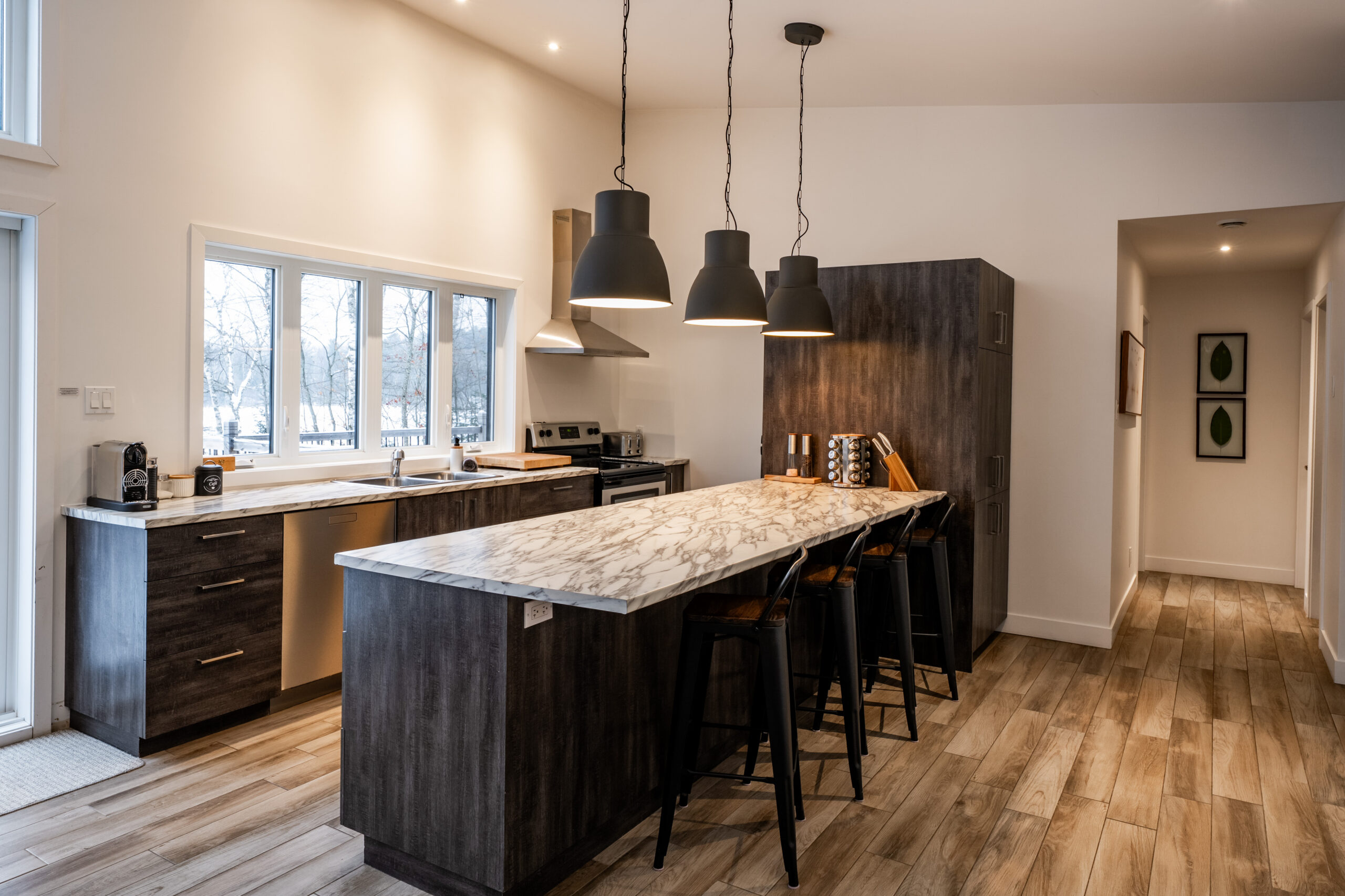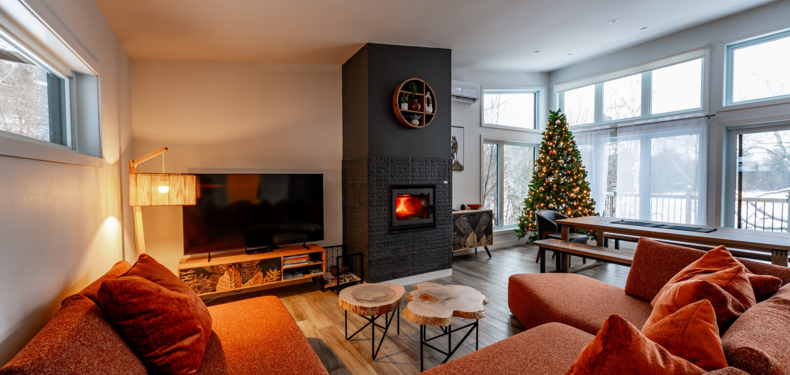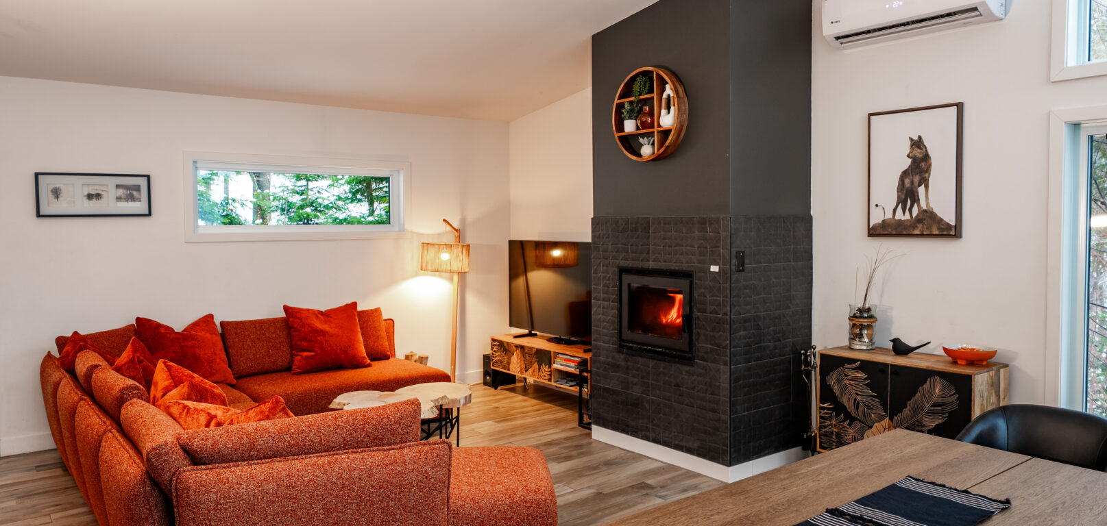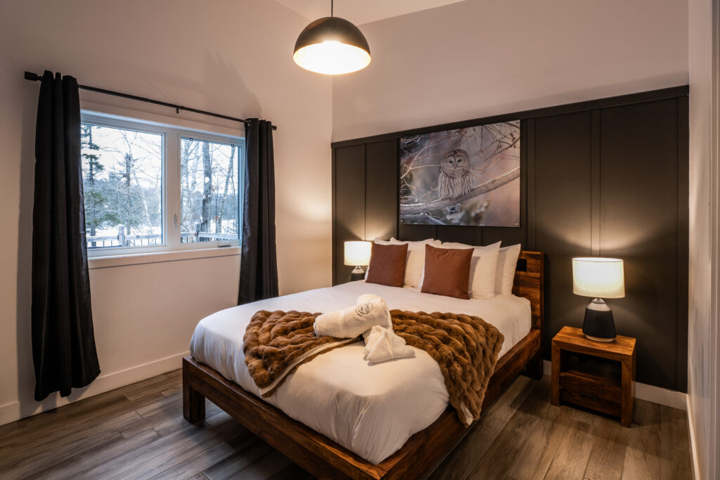 A contemporary chalet located just 1 hour and 15 minutes from Montreal, with private access to an eco-friendly, motor-free lake.