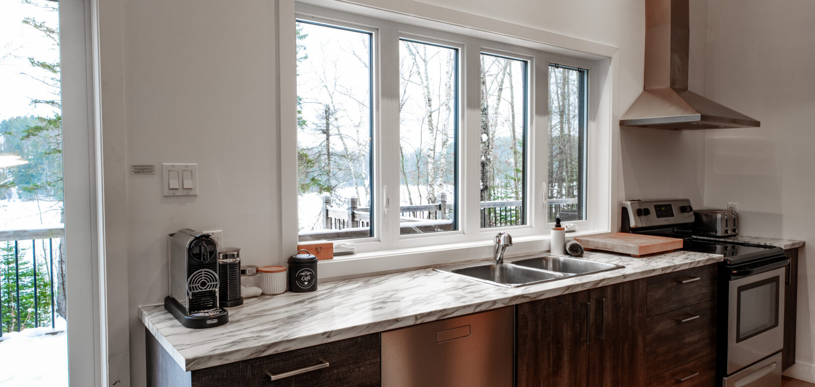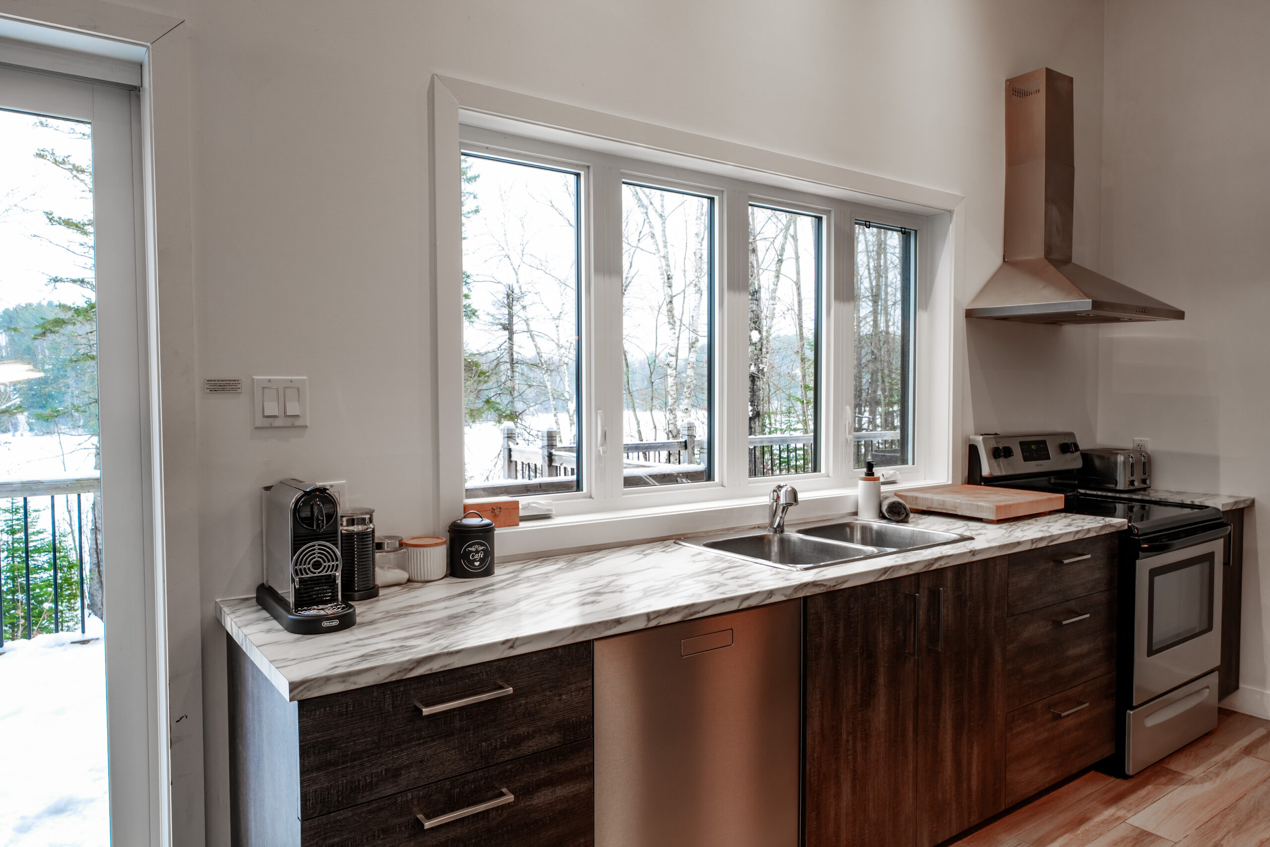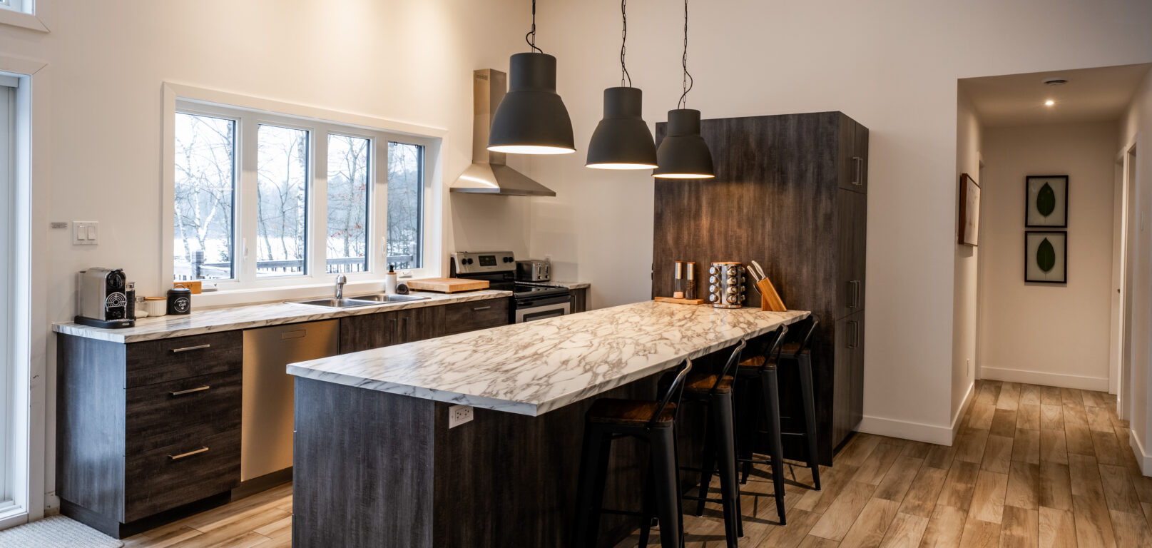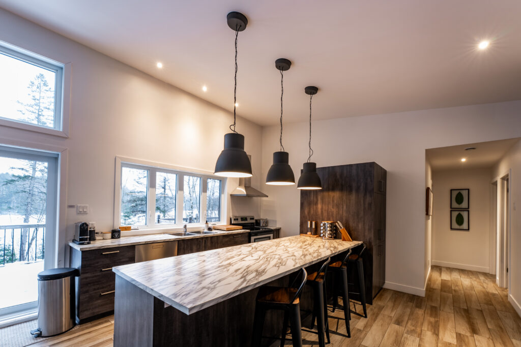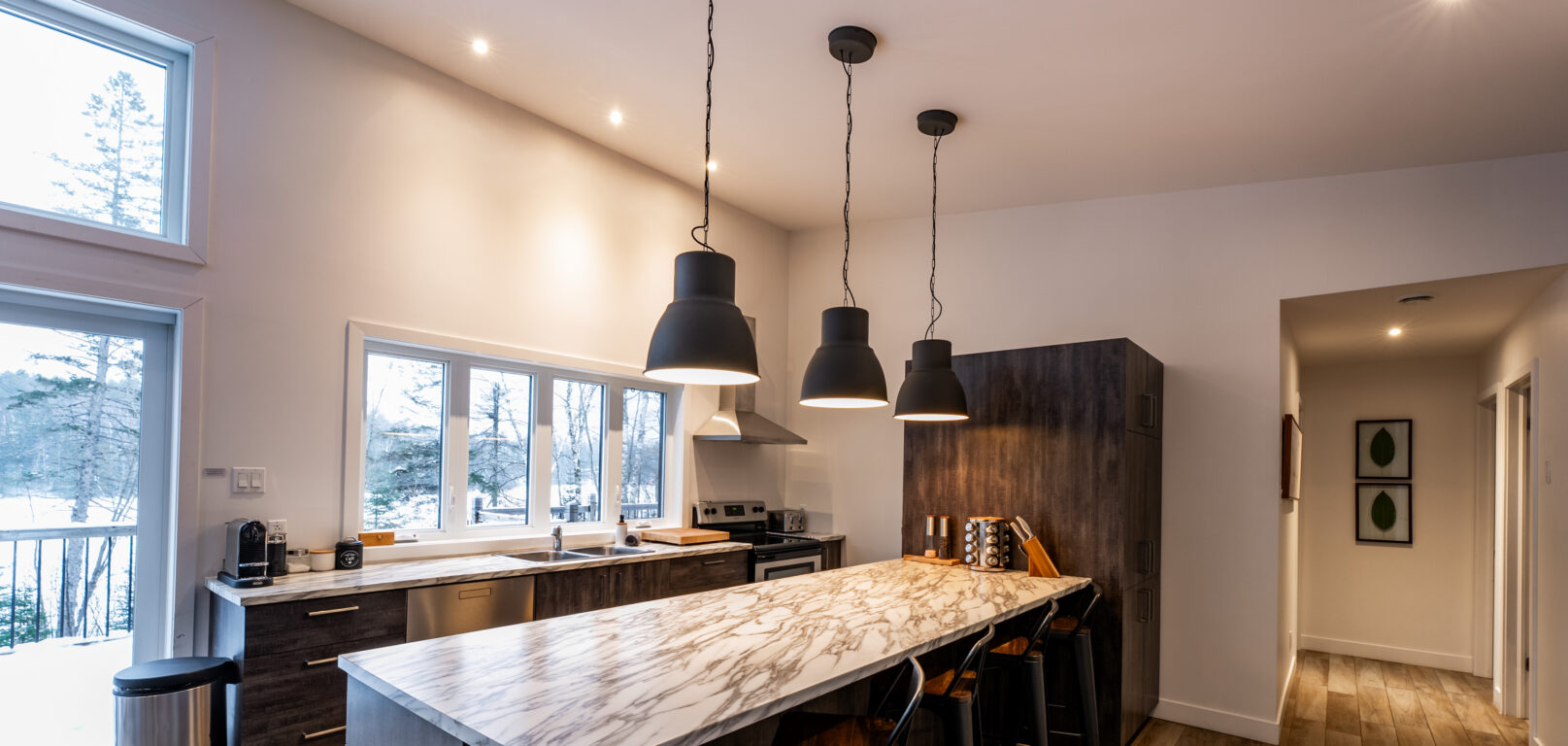 A contemporary chalet located just 1 hour and 15 minutes from Montreal, with private access to an eco-friendly, motor-free lake.