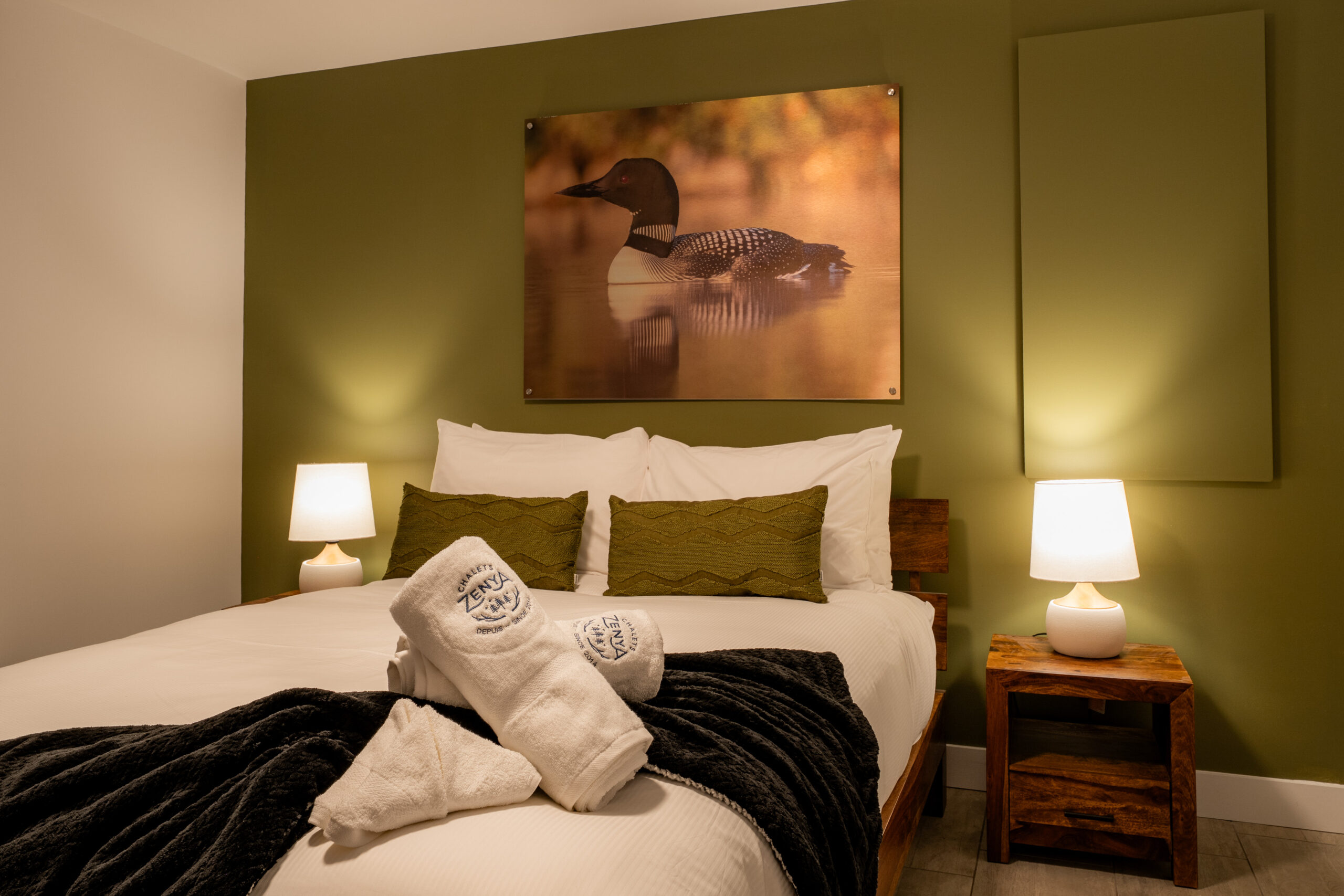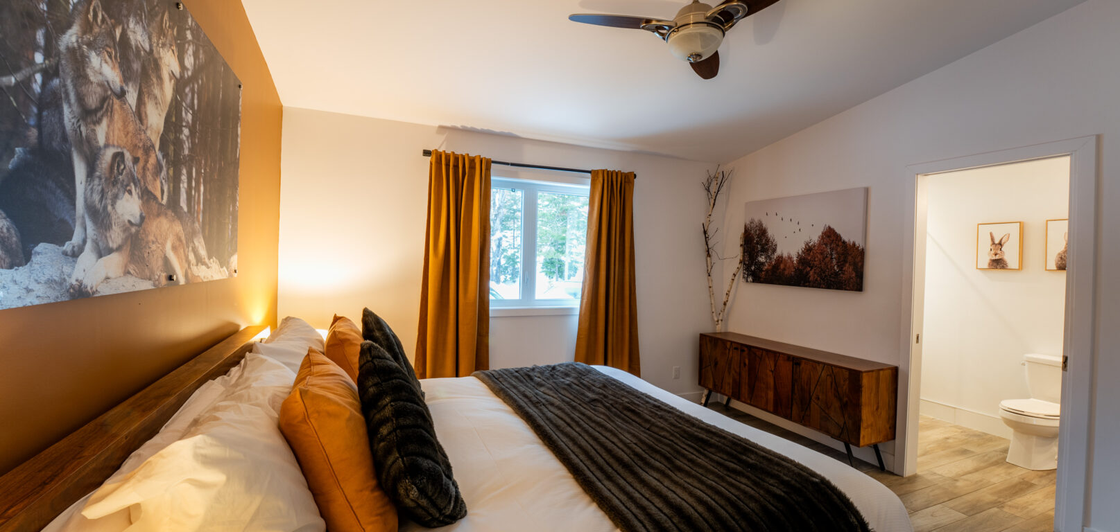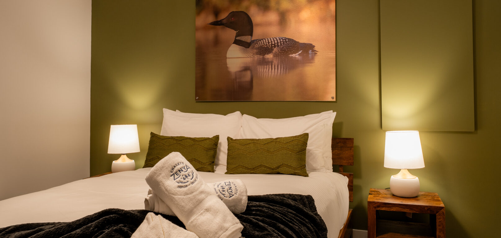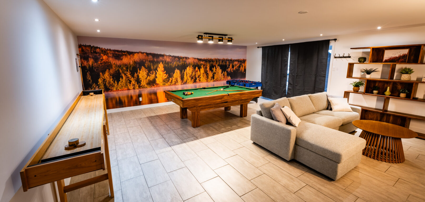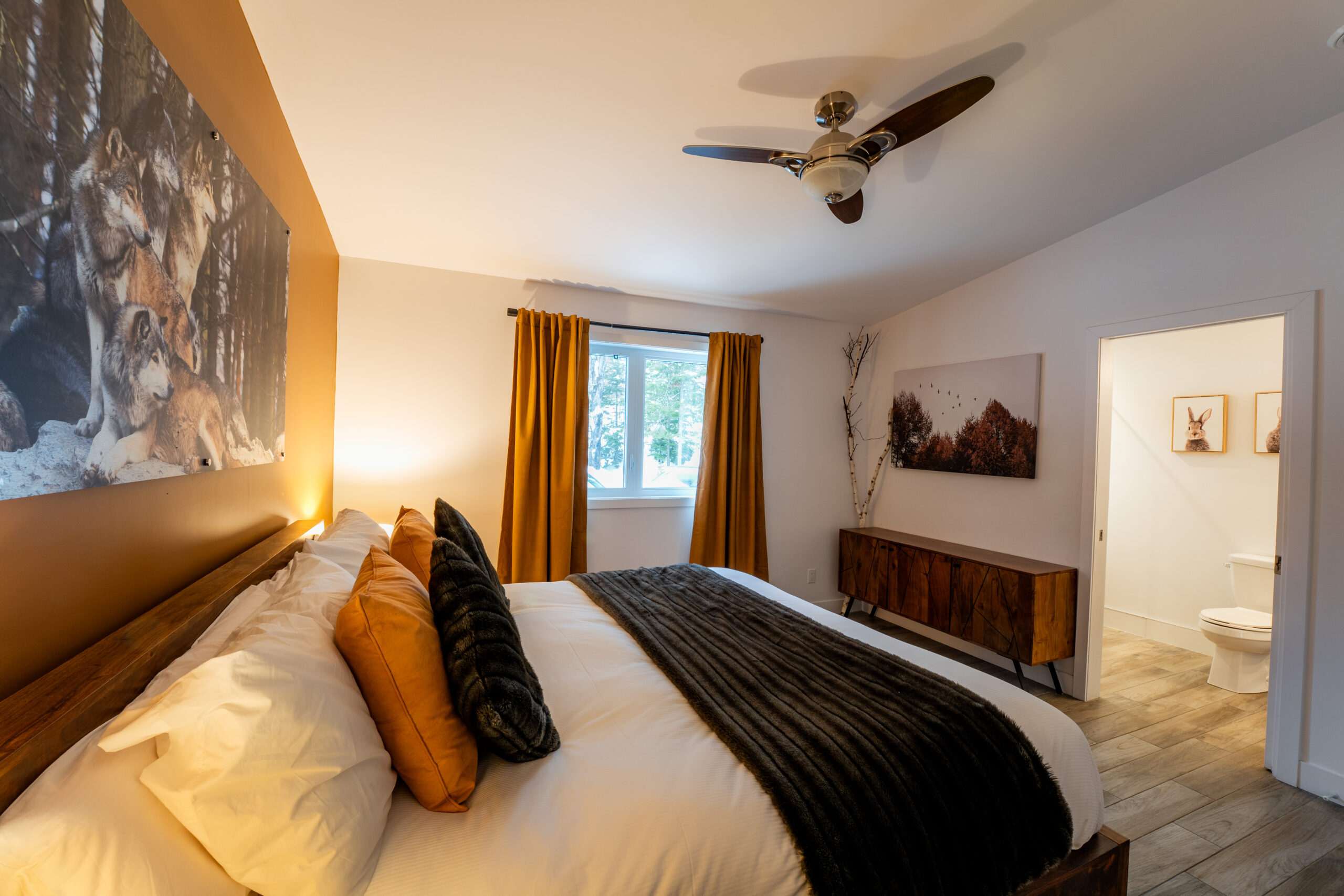 Chalet Serenia is a fully renovated lakefront retreat featuring 4 bedrooms, 3 bathrooms, an indoor and outdoor fireplace, a pool table that converts into a ping-pong table, a foosball table, a private hot tub, an outdoor dry sauna, watercraft… and all the magic of Lanaudière at your doorstep. Let the Zenya spirit surprise you — this peaceful haven in the heart of nature is sure to exceed your expectations.