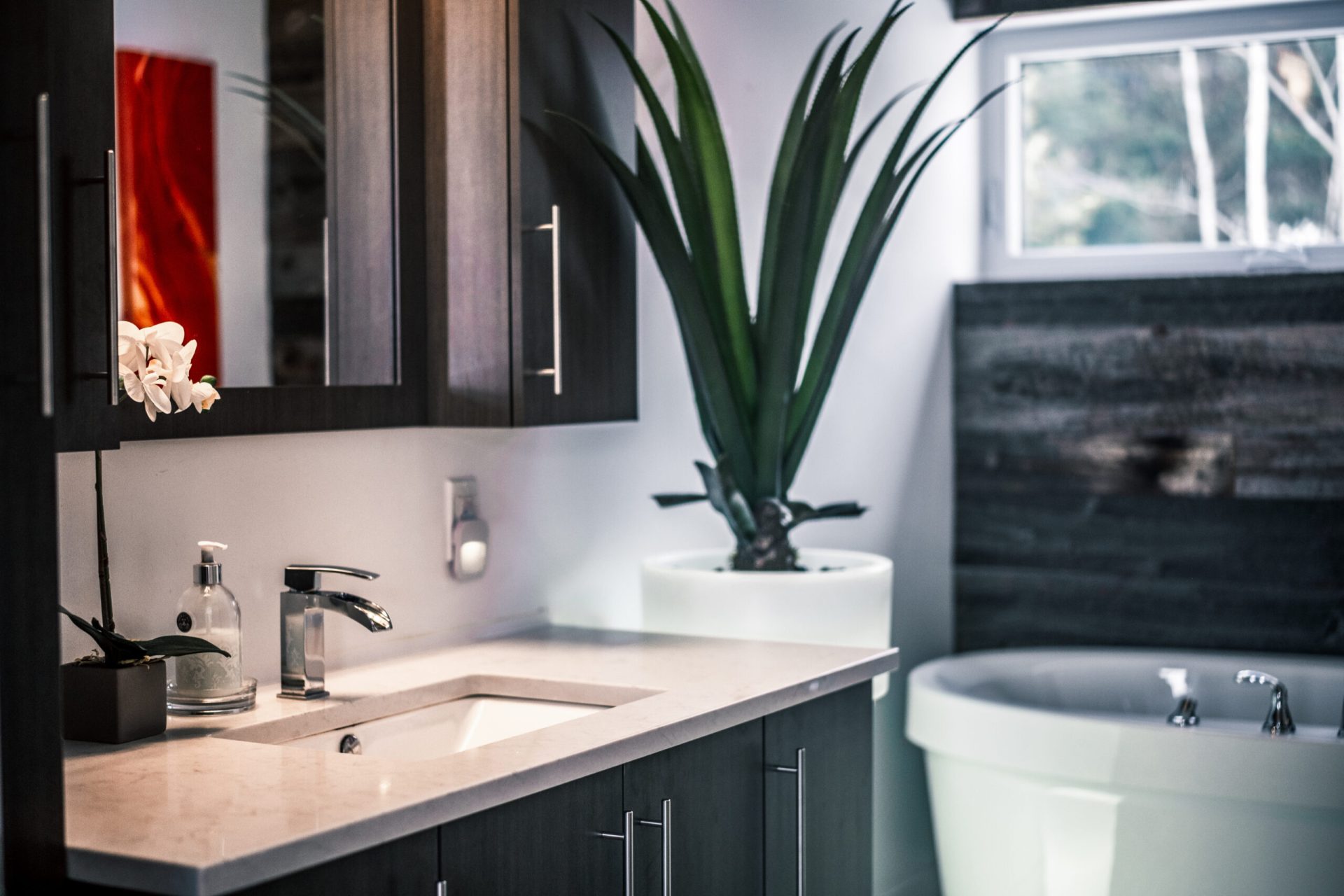 - Bedroom 1: a large master suite with King bed and full bathroom (freestanding bath and glass shower)
