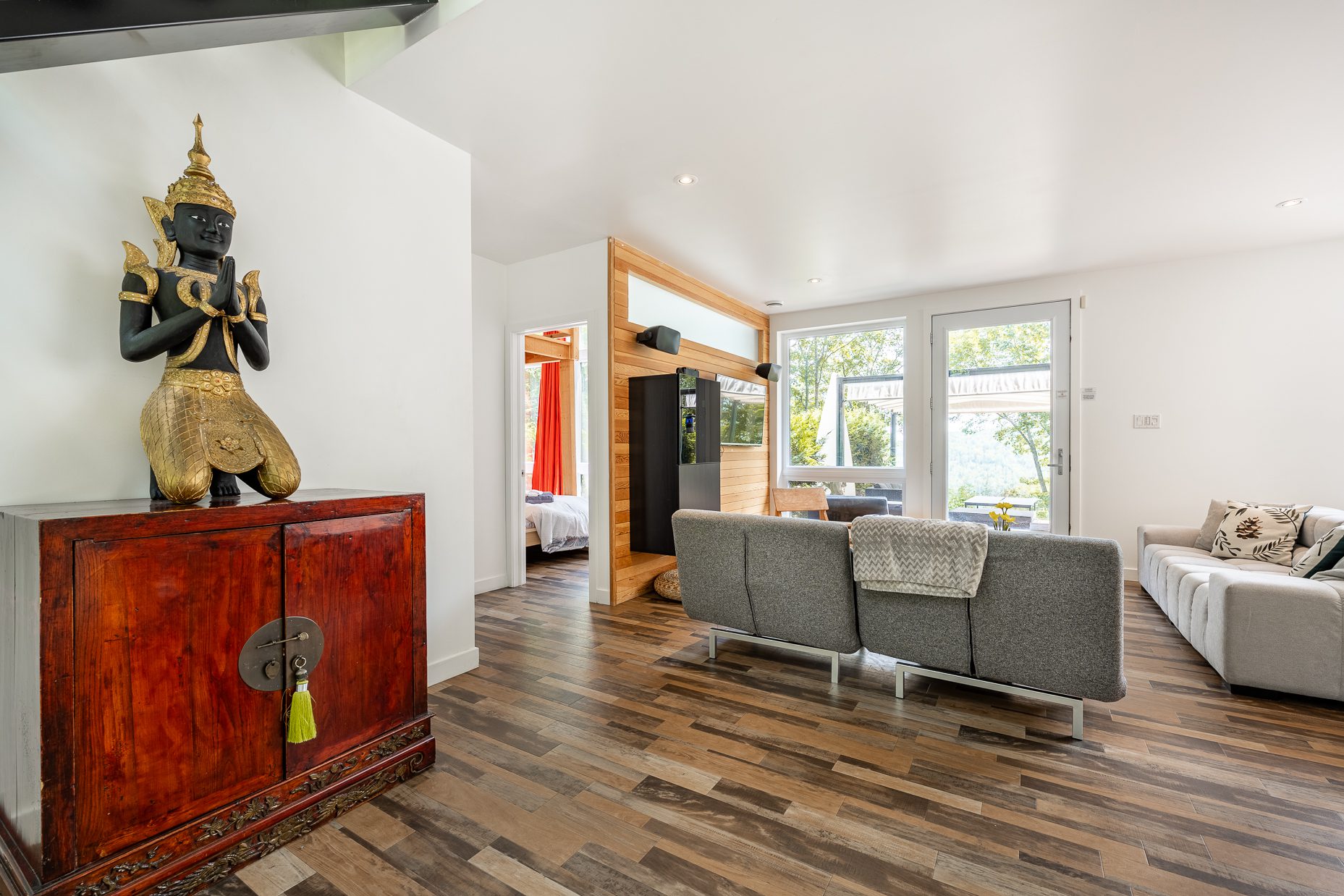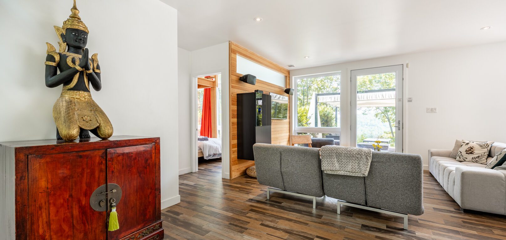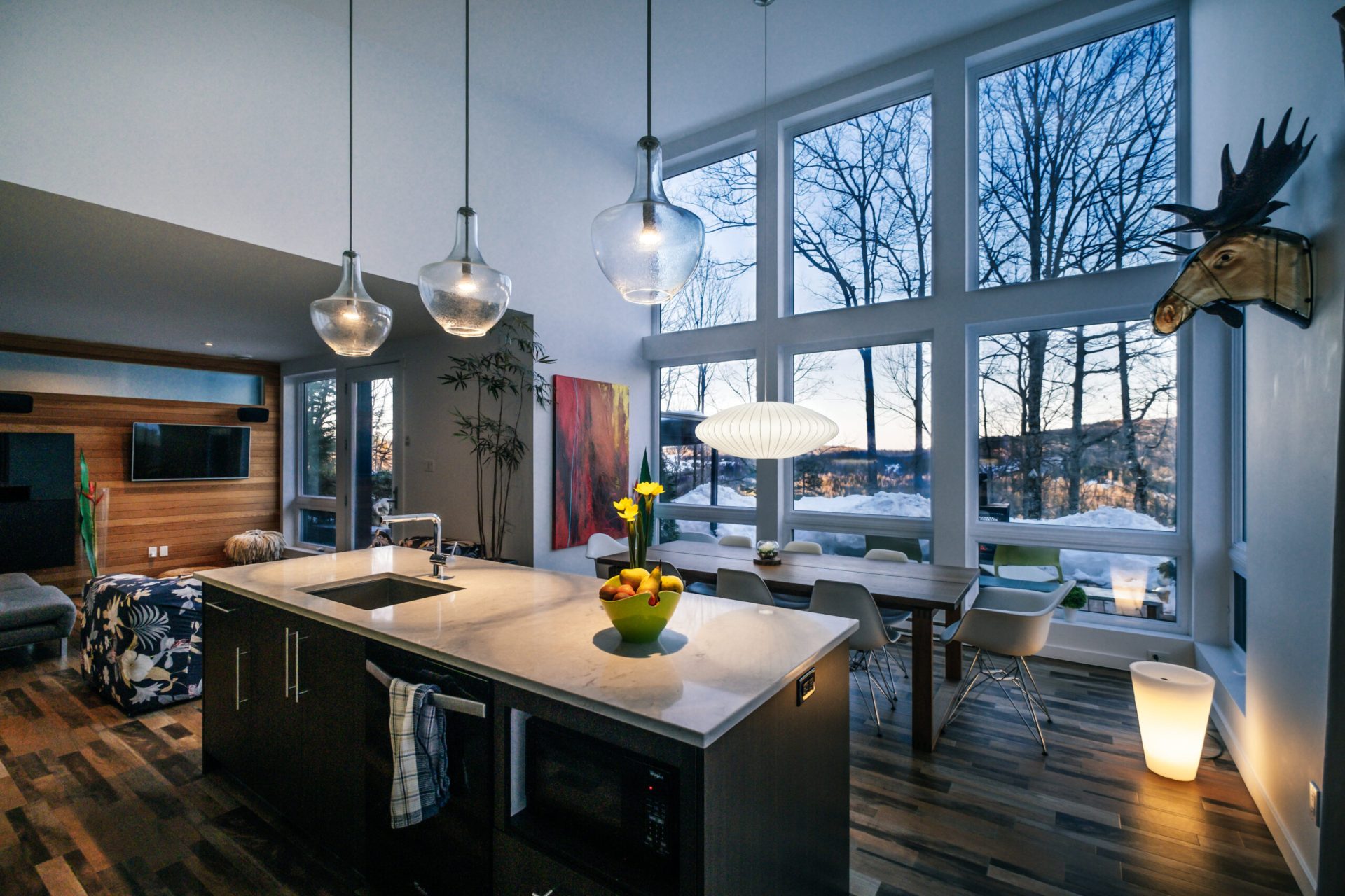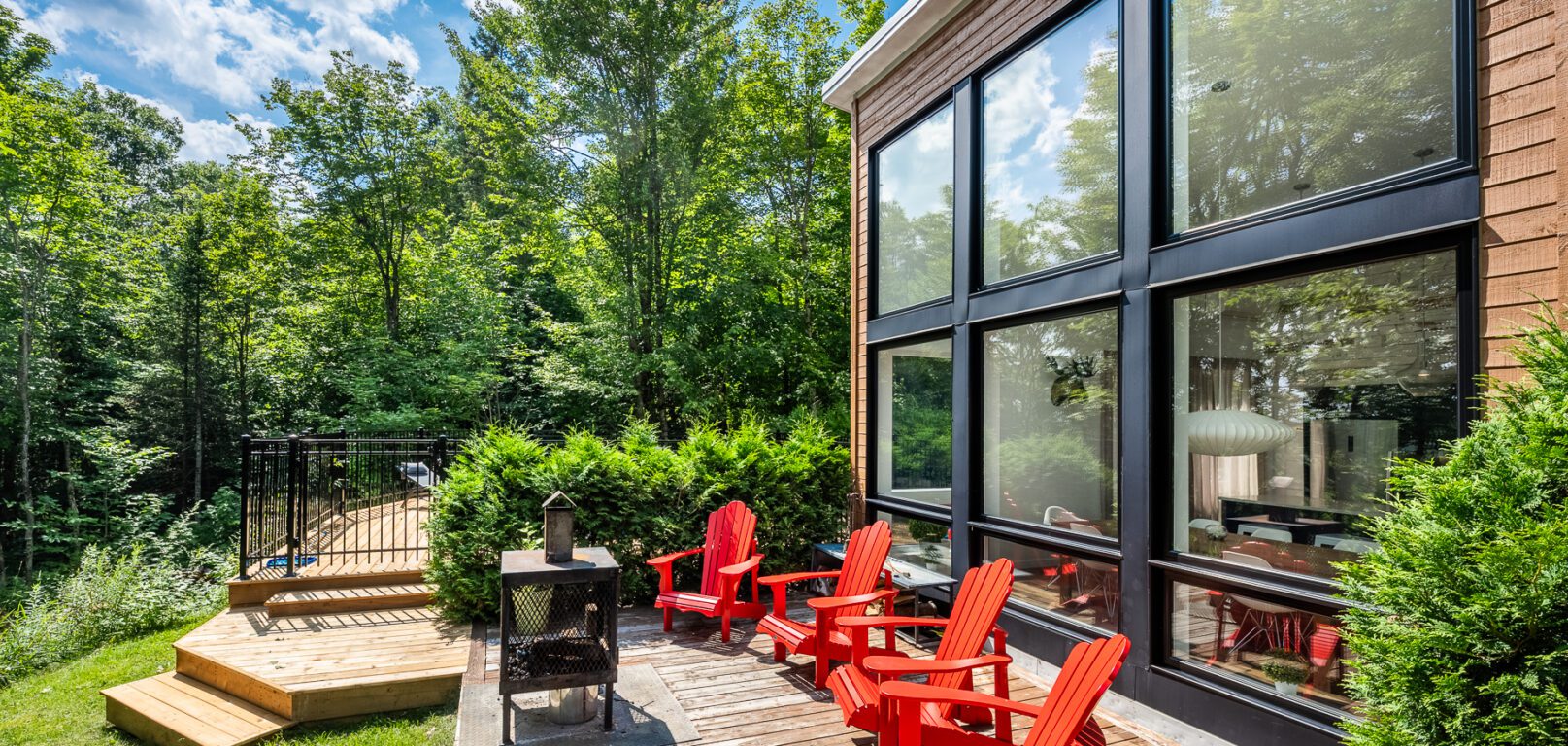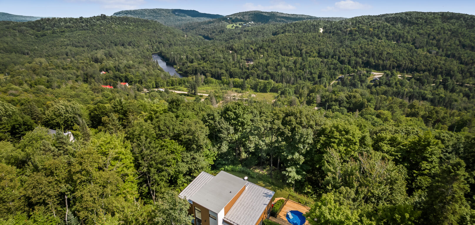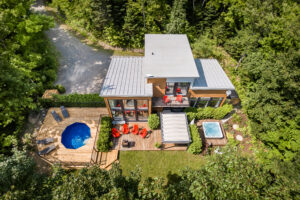 Chalet Villa Bianca is a superb urban villa with a contemporary design, located 5 minutes from the village of St-Alphonse-Rodriguez offering access to the L’Assomption River (just 1 min. by car at the bottom of the mountain). You also have access to a small private beach for swimming where 2 kayaks are provided. This is the only contemporary villa on the estate with an incredible view of the surrounding beauty. The Villa is located on a 45,000 sq. ft. wooded lot which makes it a very peaceful place. Hot tub & outdoor dry sauna included (available all year round). Note that a new private heated outdoor pool is now available for the Summer season 2023 (open from June 1st to the end of September).